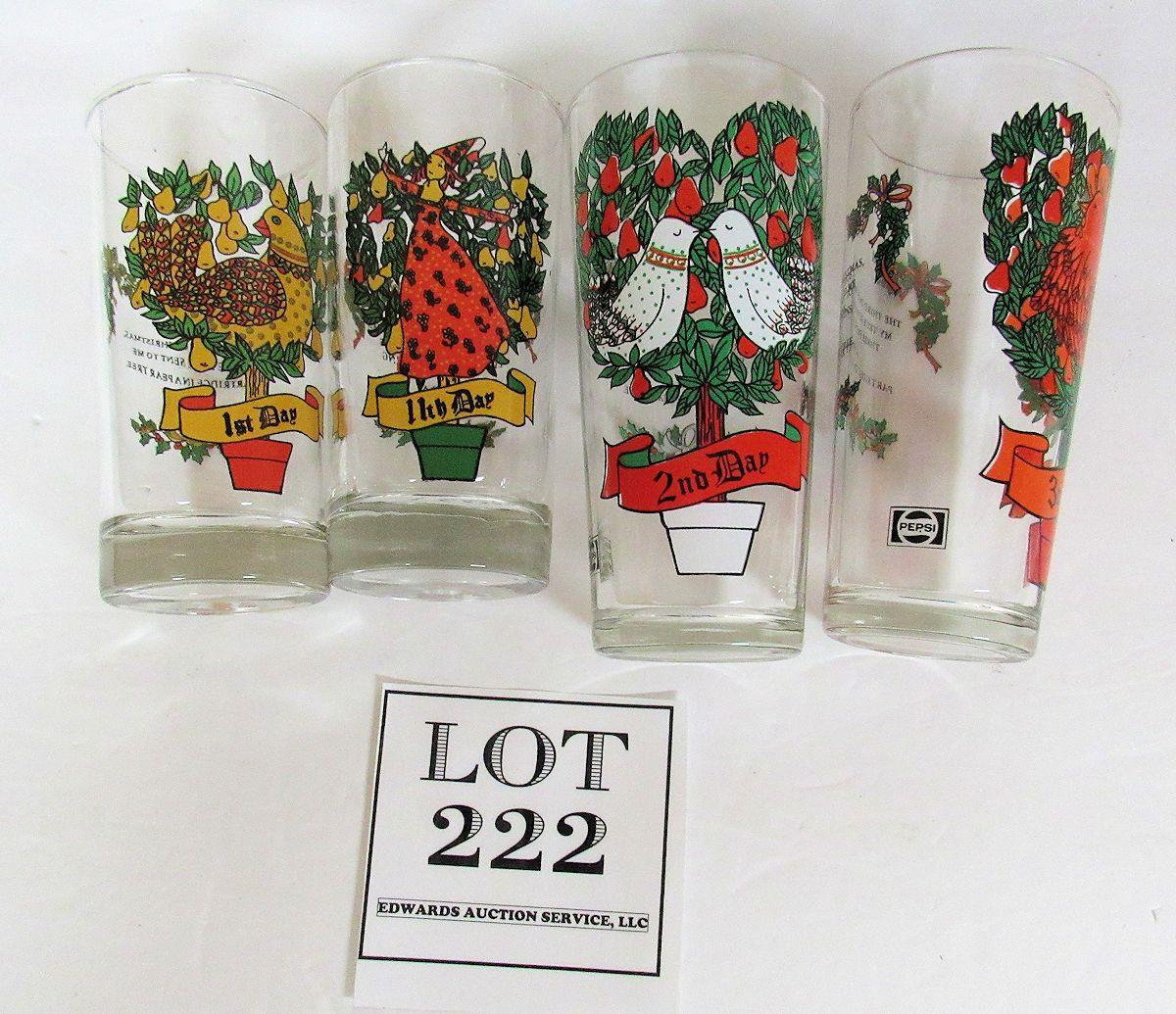 1st day and 11th day are different glasses, smaller, unmarked, but in good condition. The others are all from the same set, Pepsi Cola, and all in good condition.