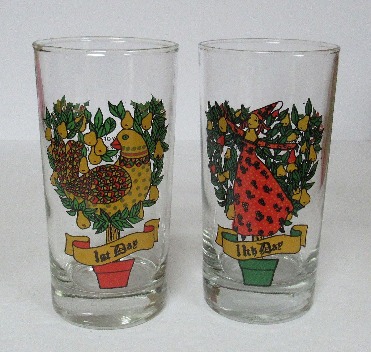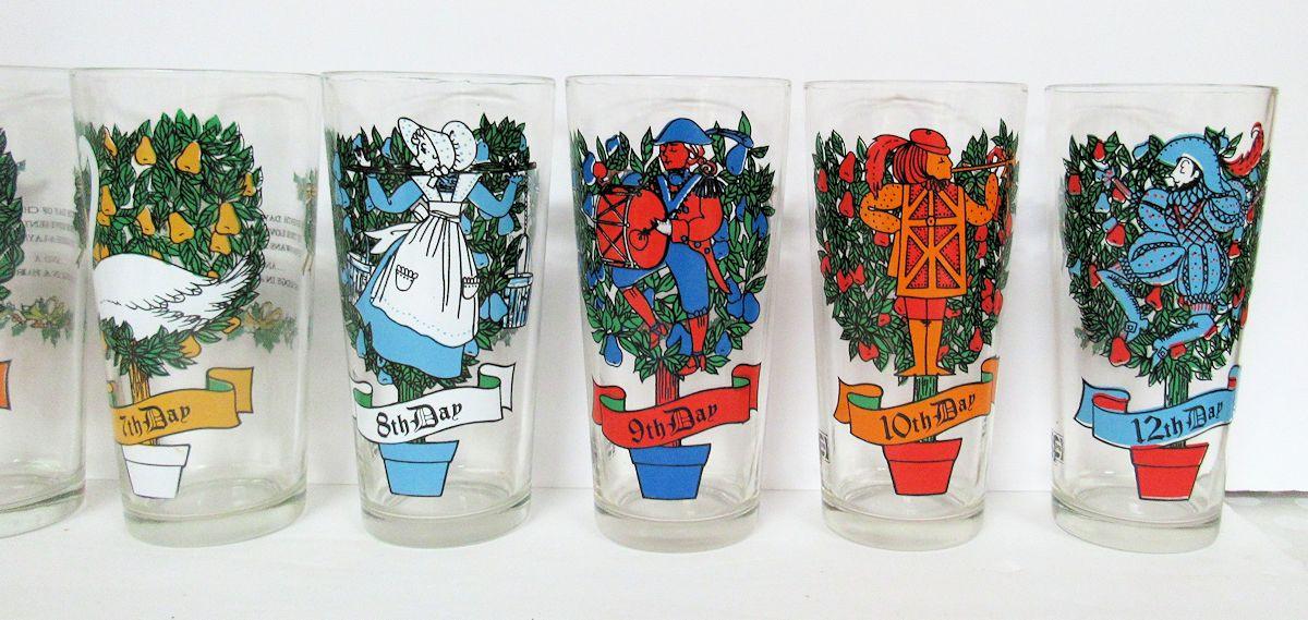 12 Days of Christmas Glass Tumblers, 10 are Pepsi Glasses 2 Are Different, Read Description