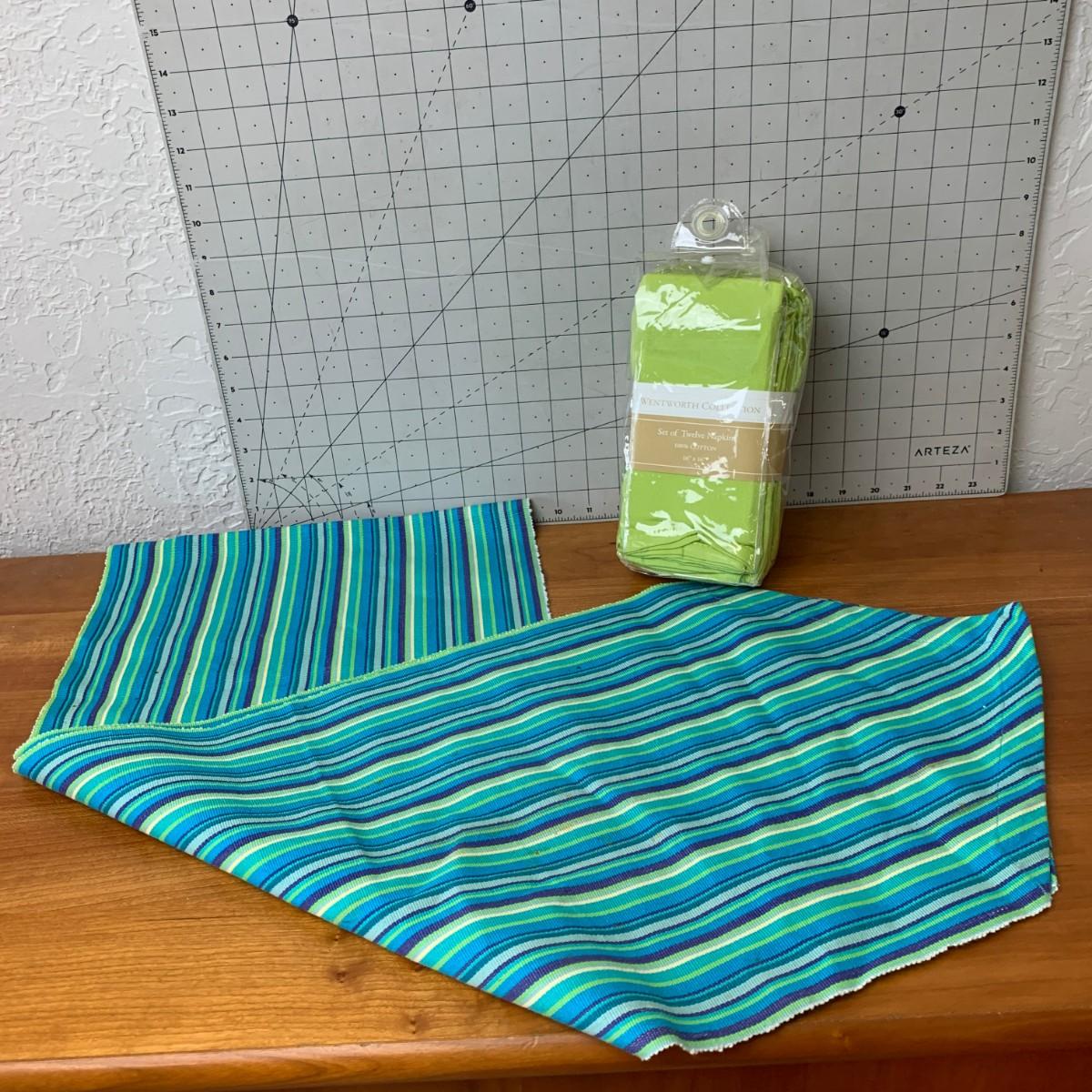 #150 Green Cotton Napkins & Blue/Green Table Runner