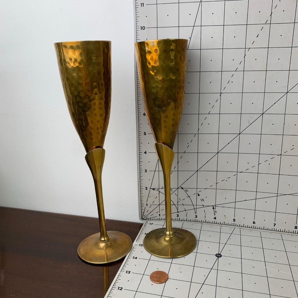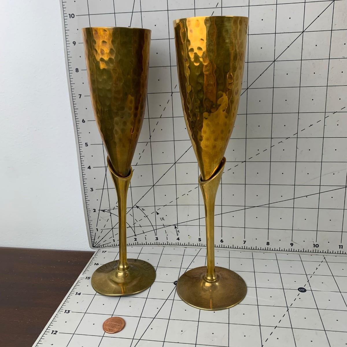 #174 Vintage Hammered Brass Tulip Fluted Champagne Glasses