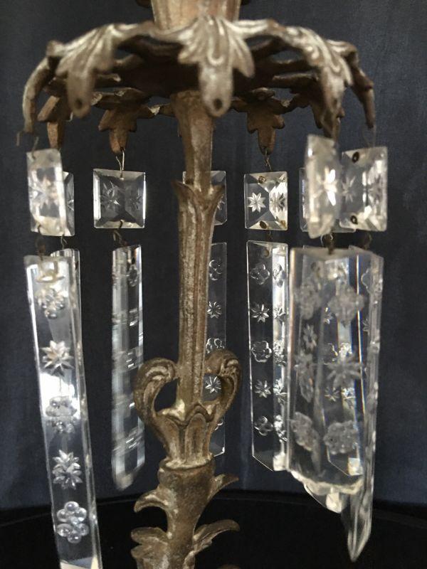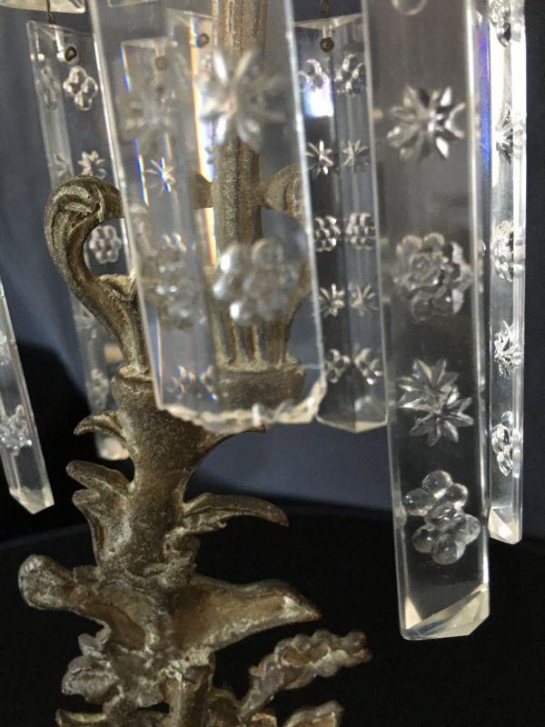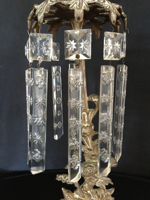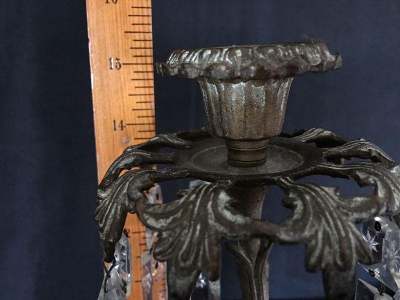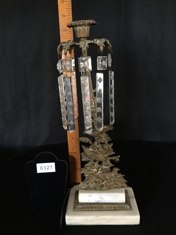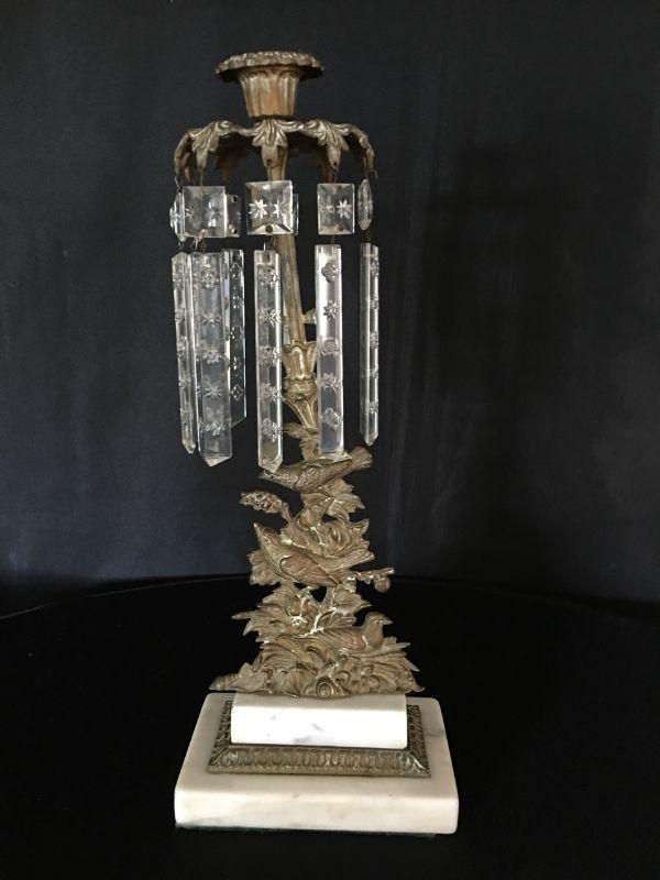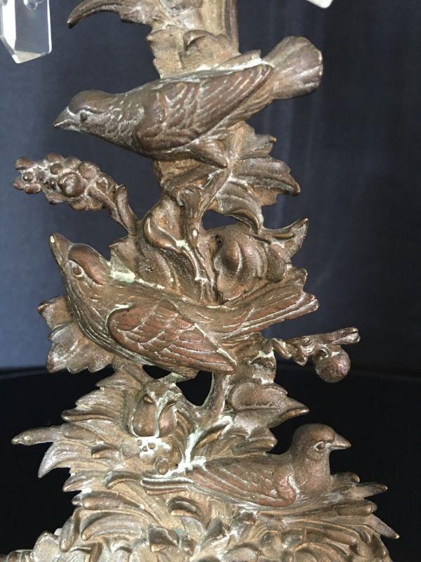 Gorgeous Antique 19th Century Candlestick w/ Crystals & Bronze Bird Ornaments Lot # 327