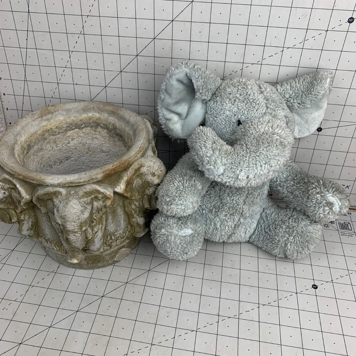 #203 Elephant Plant Stand & Stuffed Toy