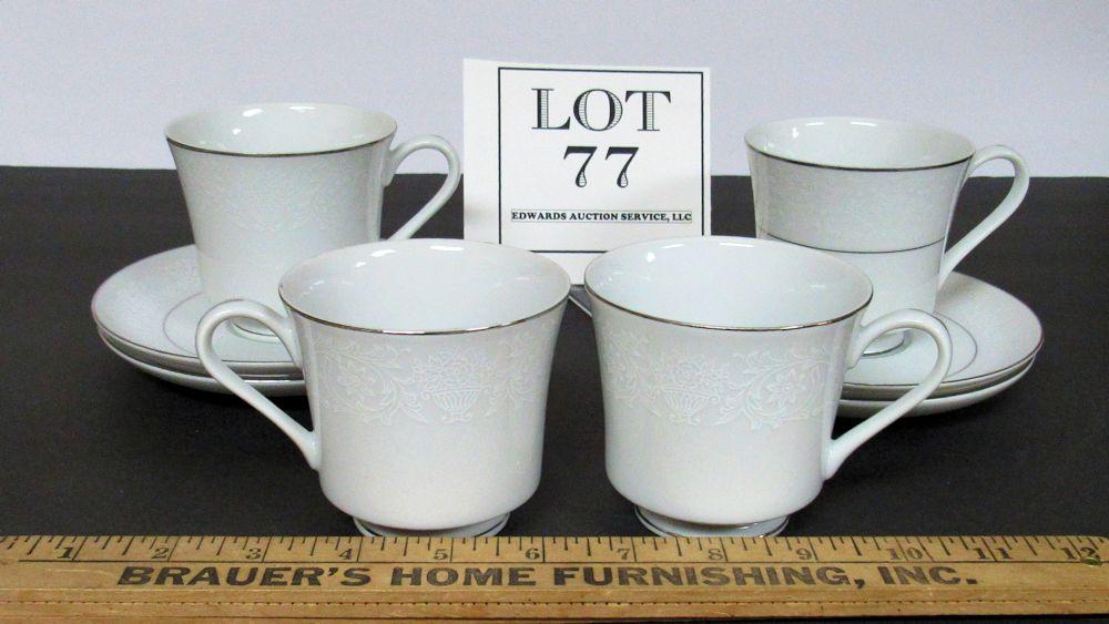 4 Vintage Lovelace Fine China Cup and Saucer Sets, Crown Victoria, Japan