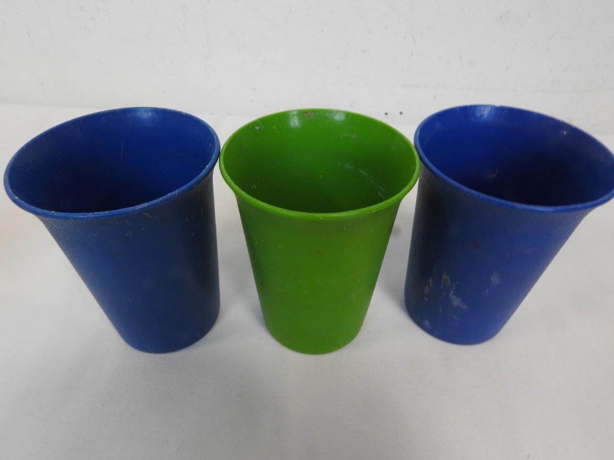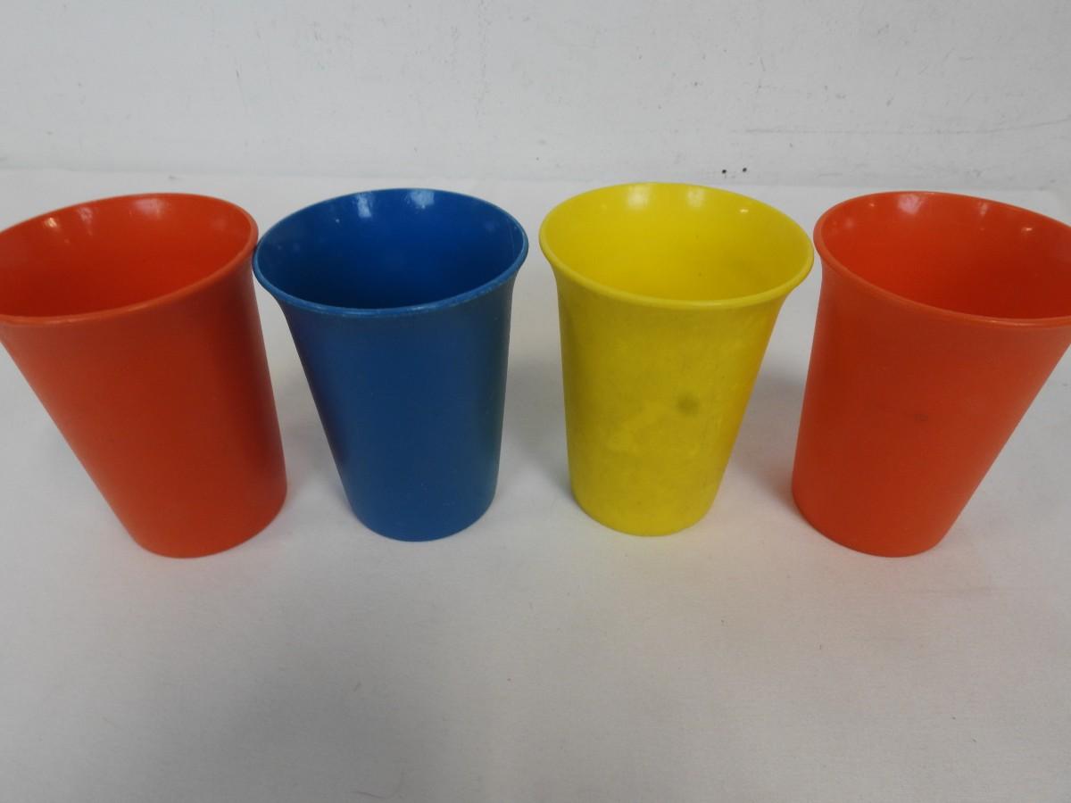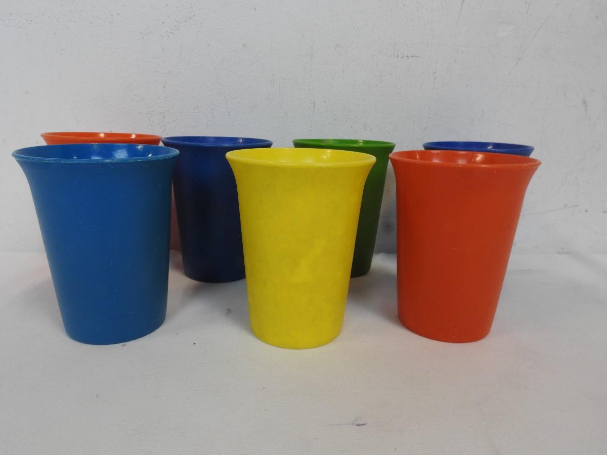 7 Vintage Tupperware Kids Bell Tumbler Cups, No Lids, Worn-See Pictures