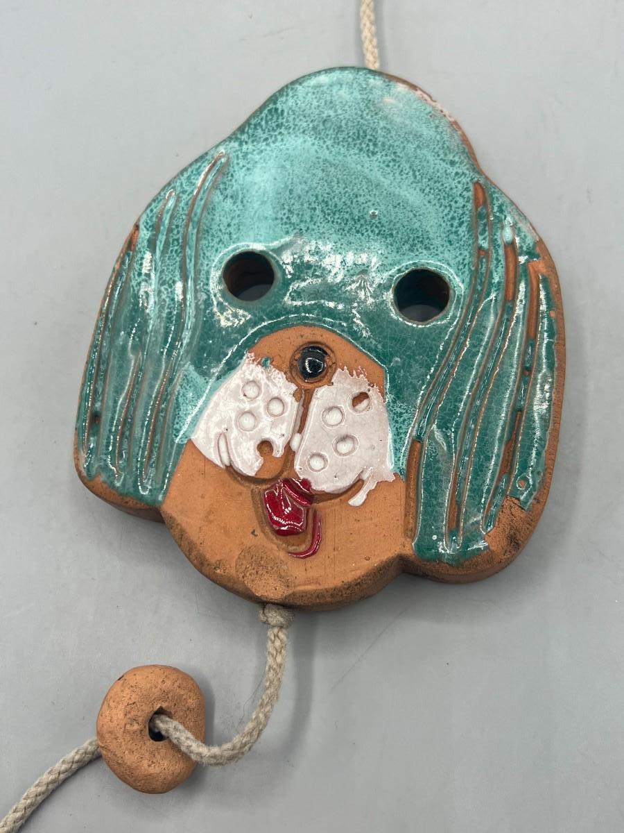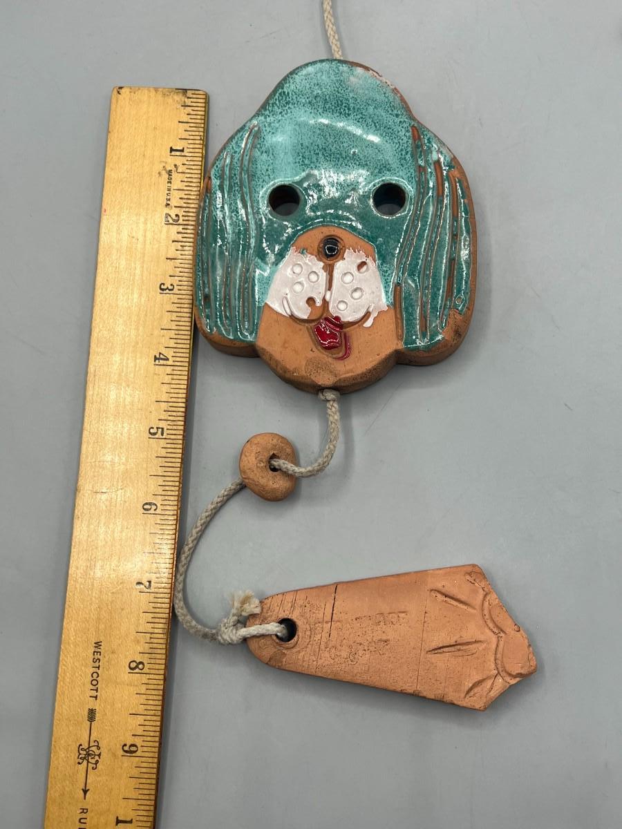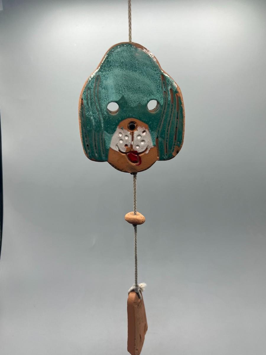 Retro Hand Crafted Clay Dog Head Hanging Wind Chime Garden Decor