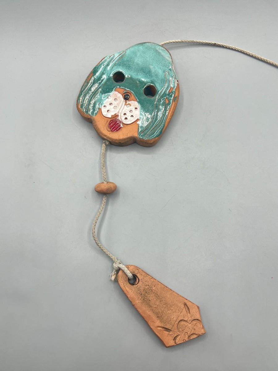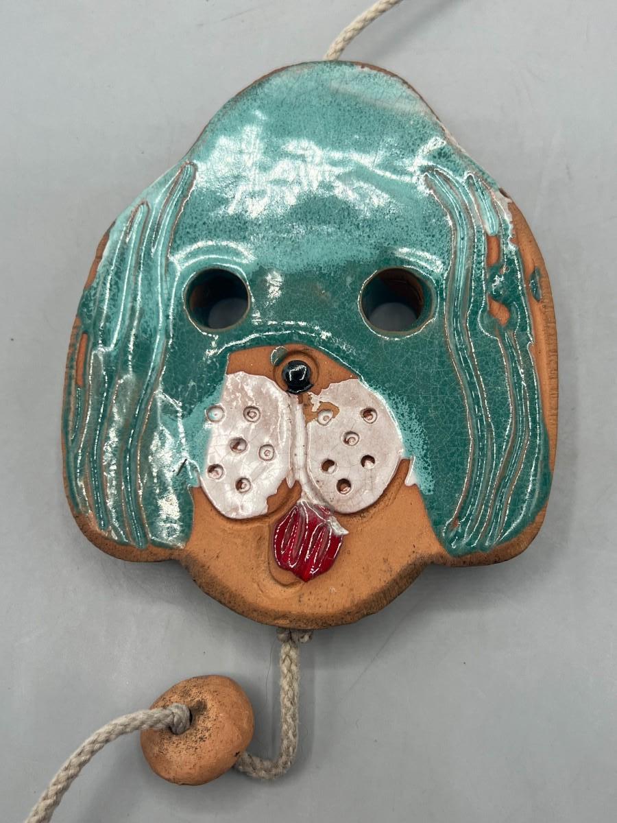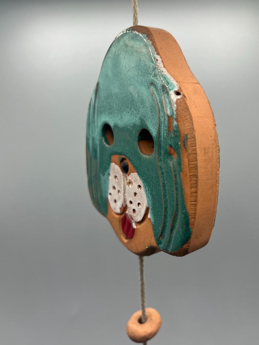 Retro Hand Crafted Clay Dog Head Hanging Wind Chime Garden Decor