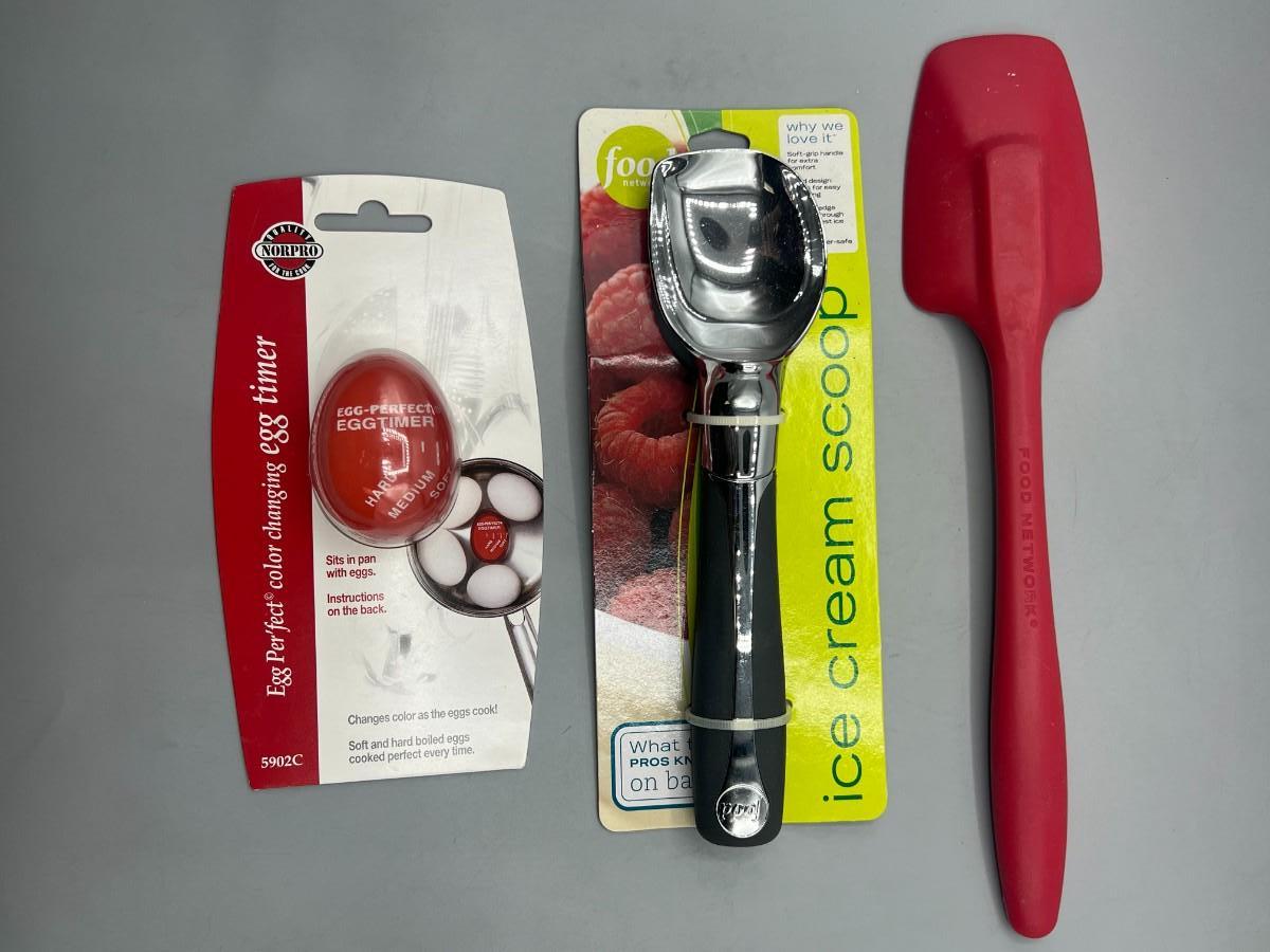 Lot of Kitchen Utensils Food Network Ice Cream Scooper, Egg Timer, & Ladle