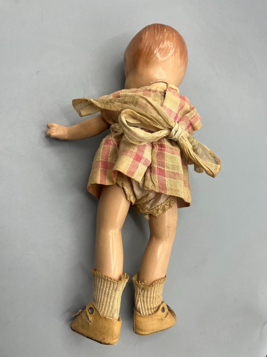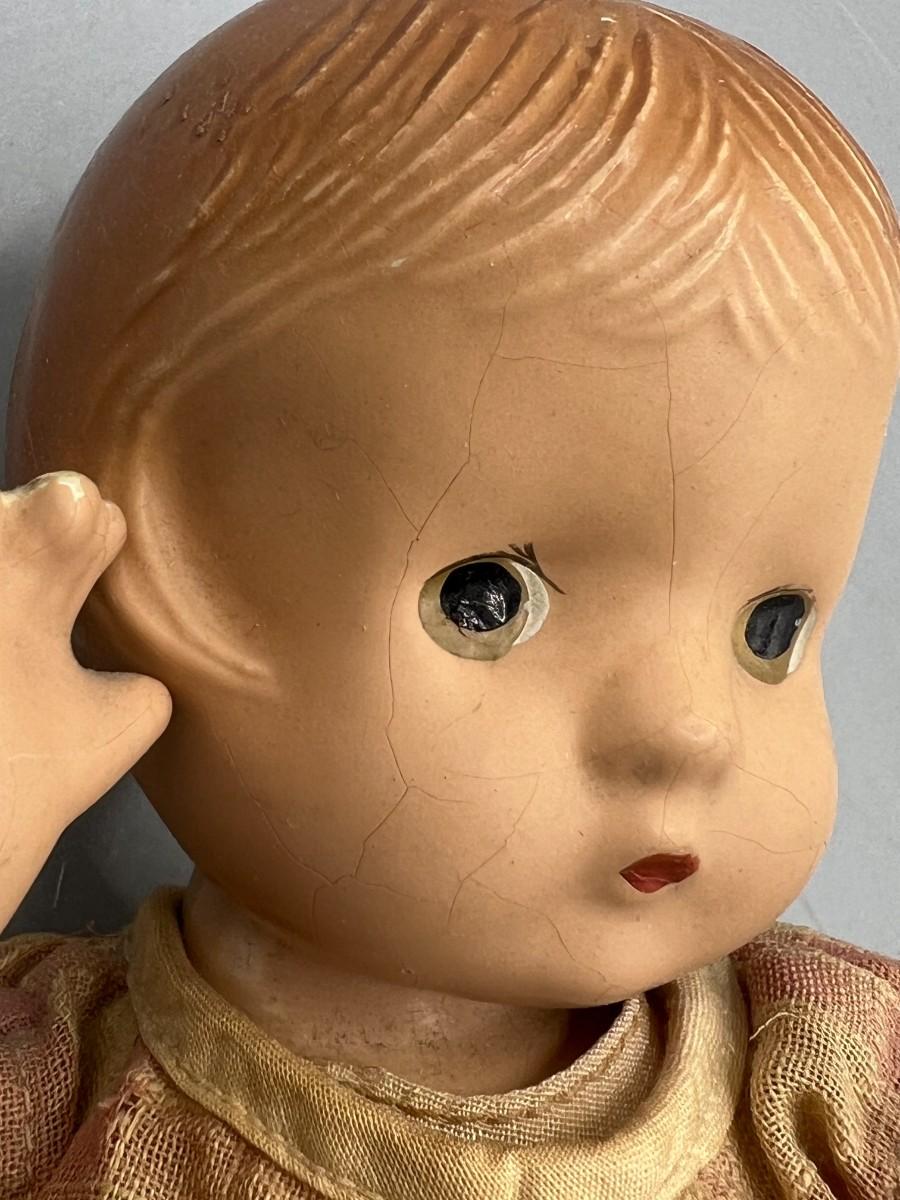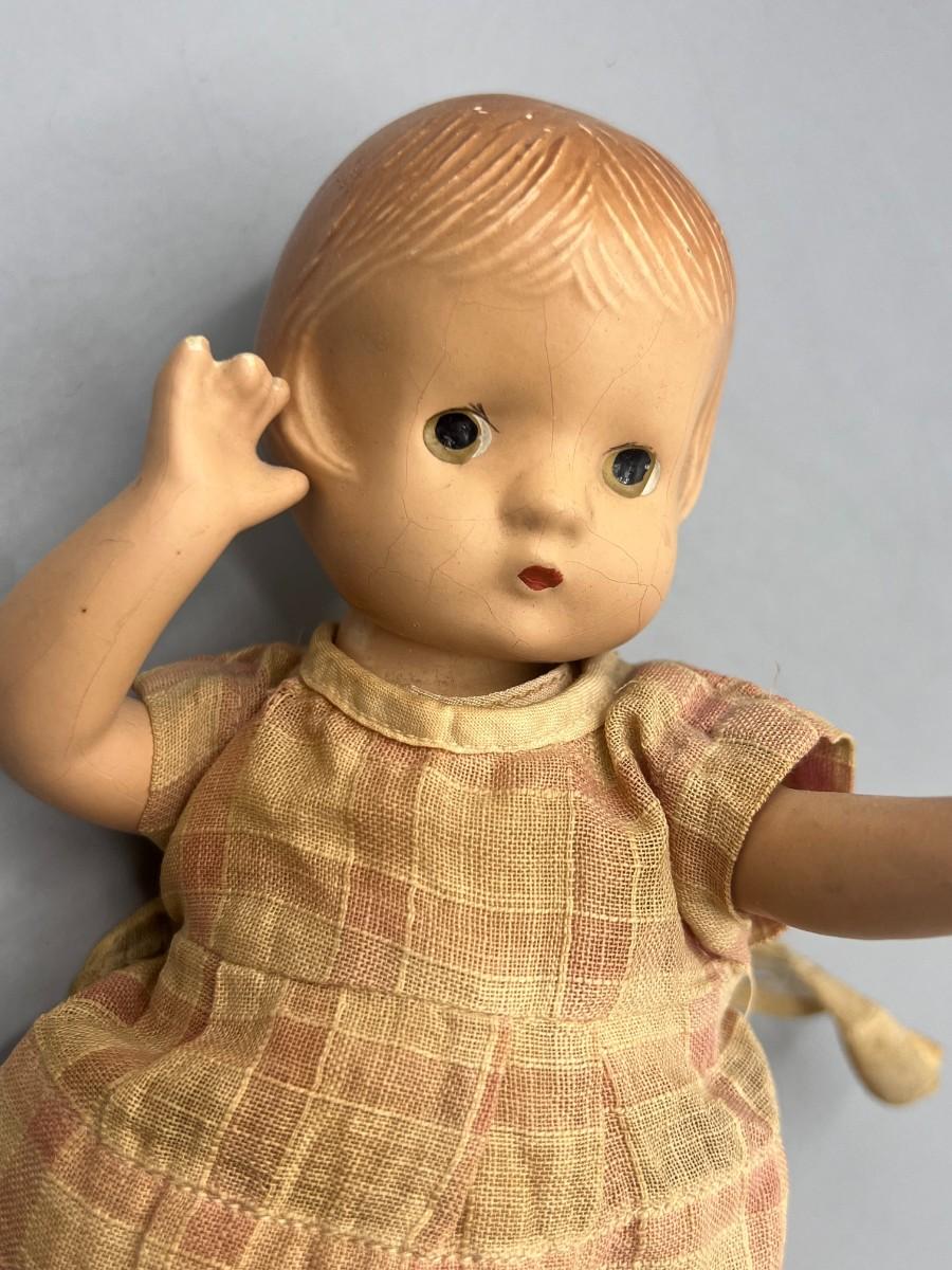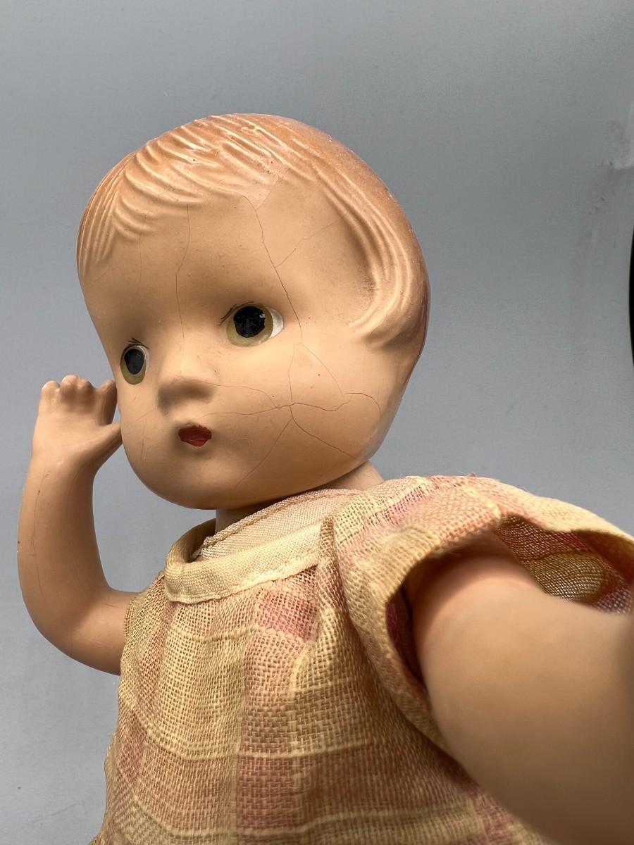 There is noticeable wear to the doll, but there is no significant damage and is in good collectible condition.