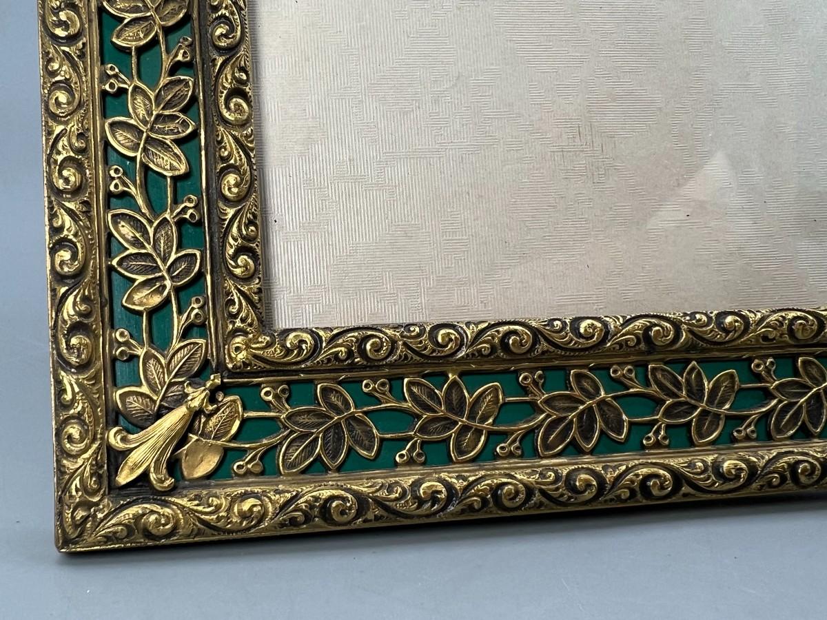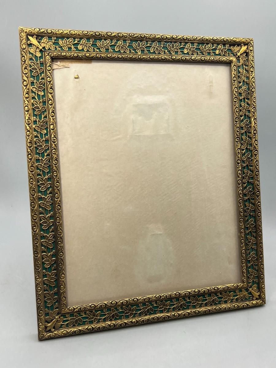 Vintage Art Nouveau Leaf Patern Style Intricate Gold 8 x 10 Metal Standing Single Photo Frame