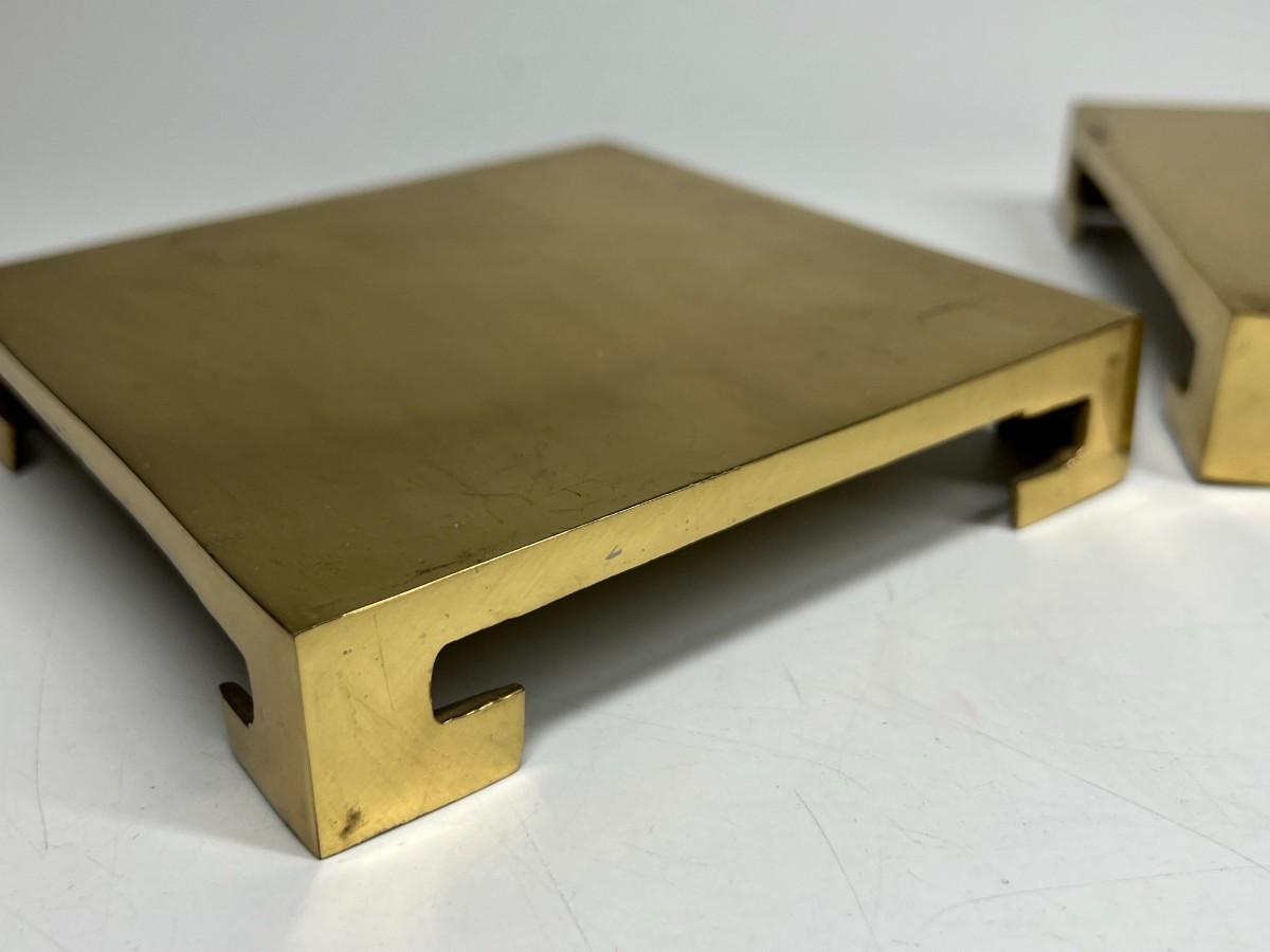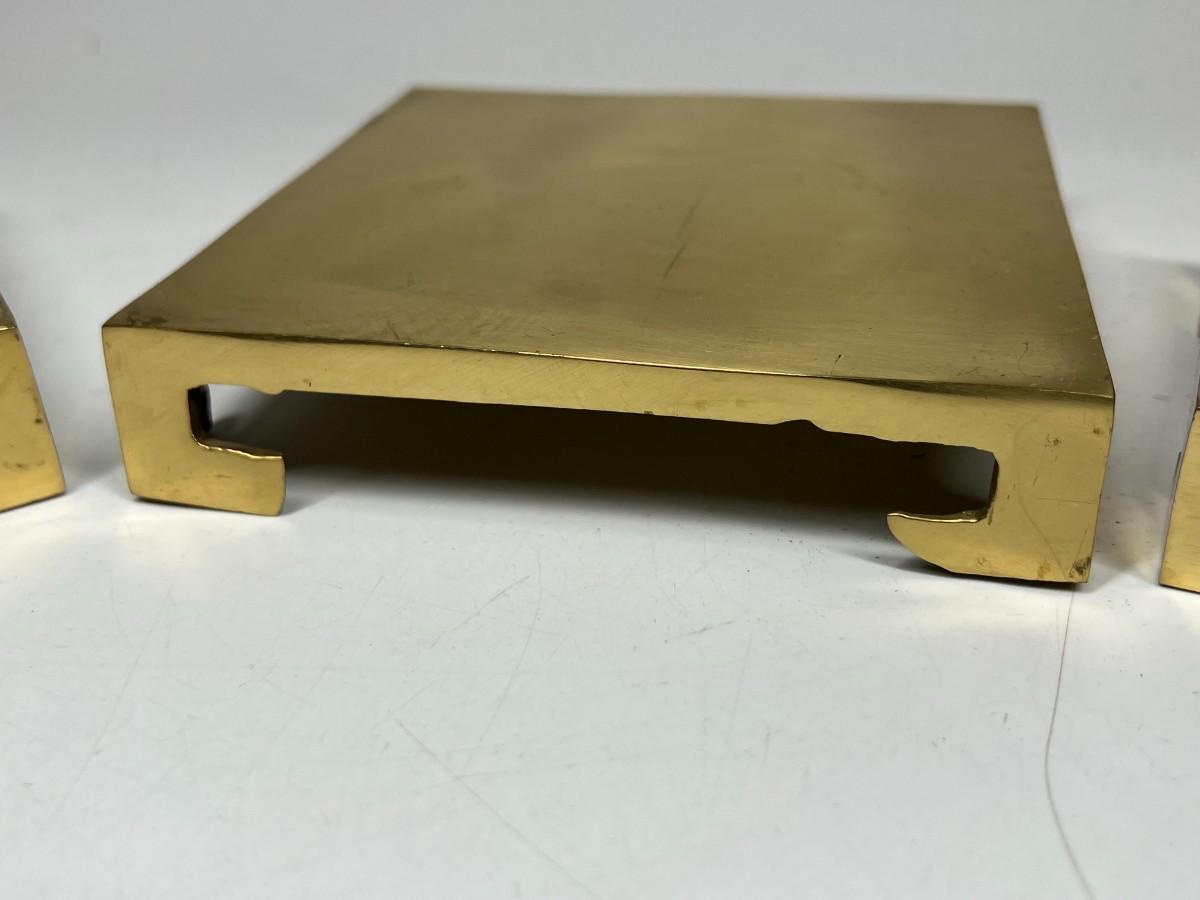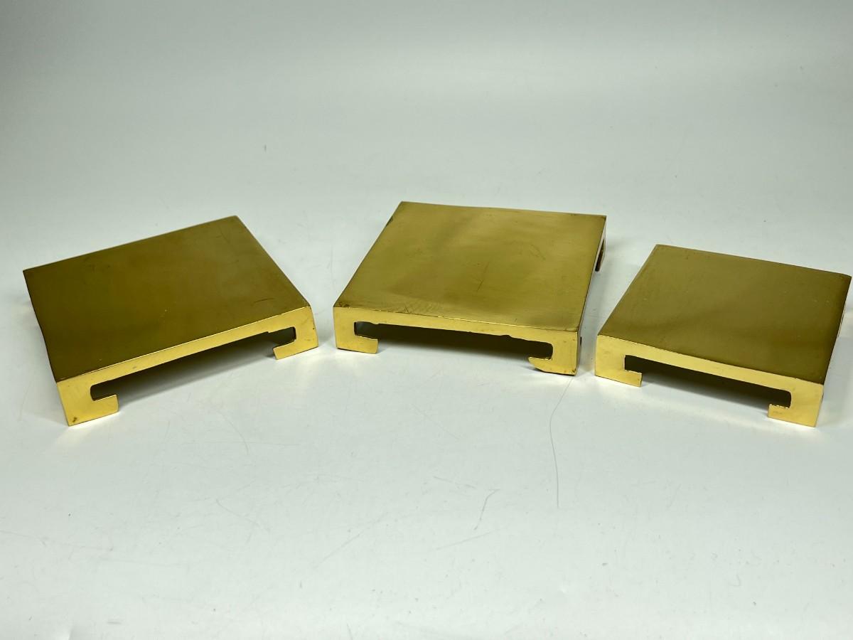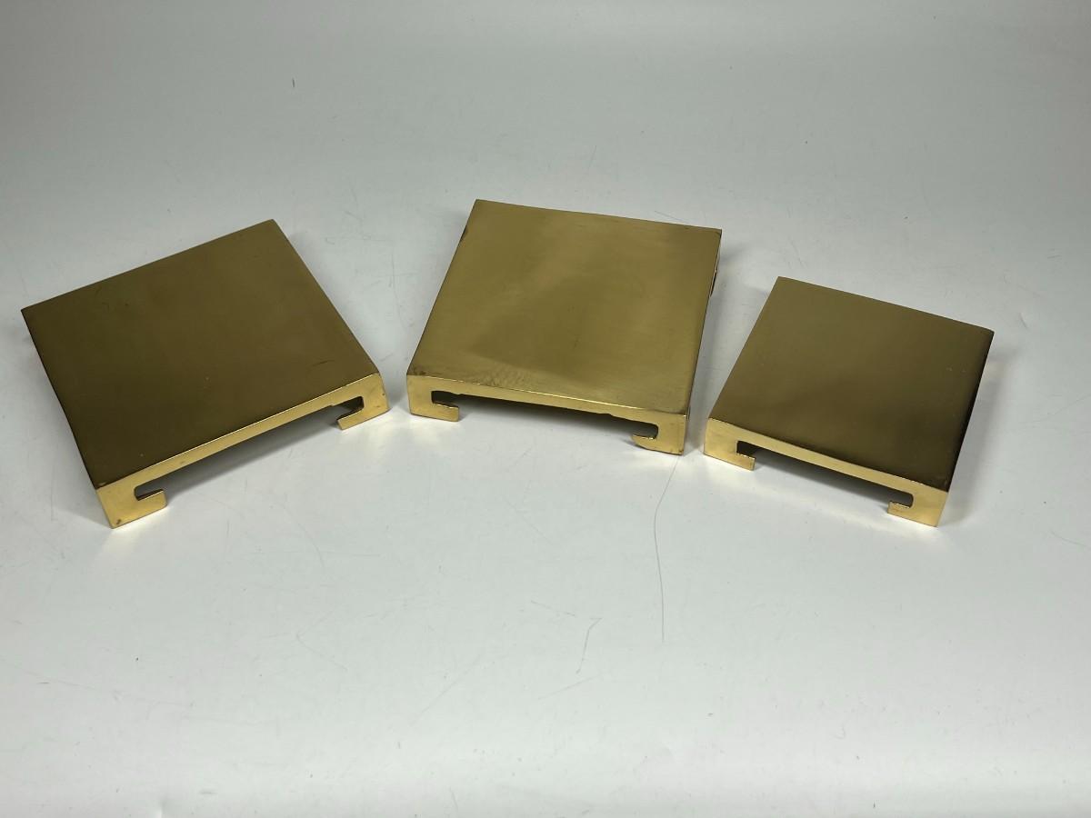 Set of Three Brass Metal Square Display Bases. Different sizes. Great for displaying objects on.