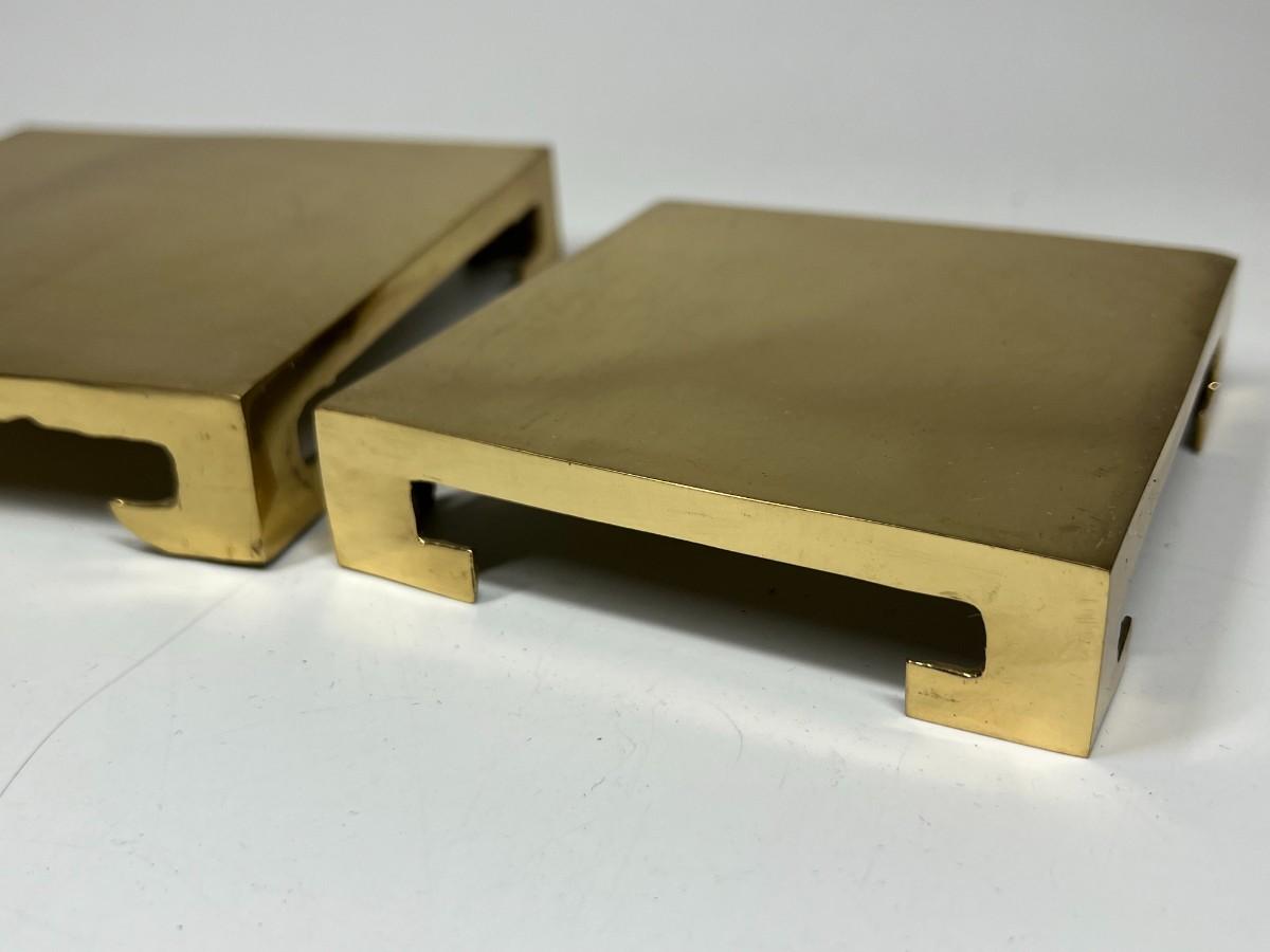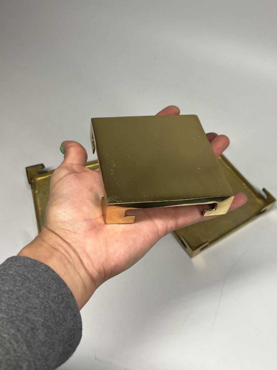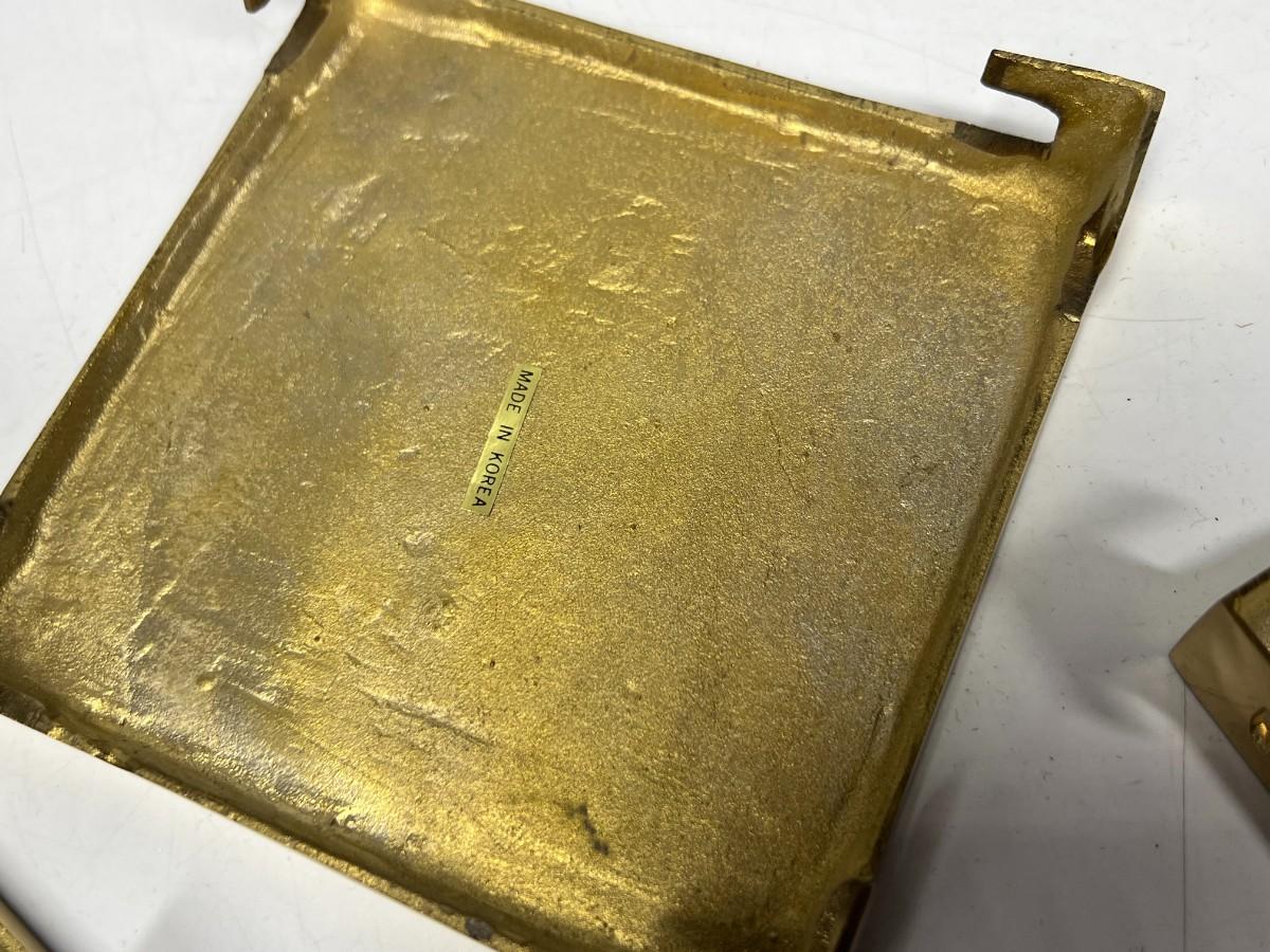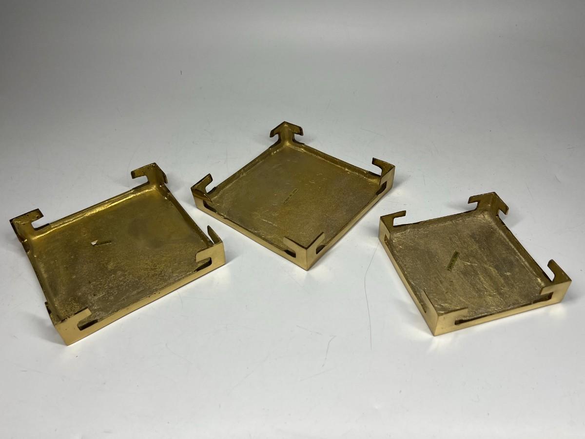 Set of Three Brass Metal Square Display Bases. Different sizes. Great for displaying objects on.