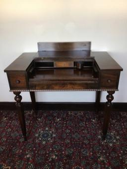 Antique Desk Solid Mahogany Fold Top By Colonial Furniture Co.  Lot # 393