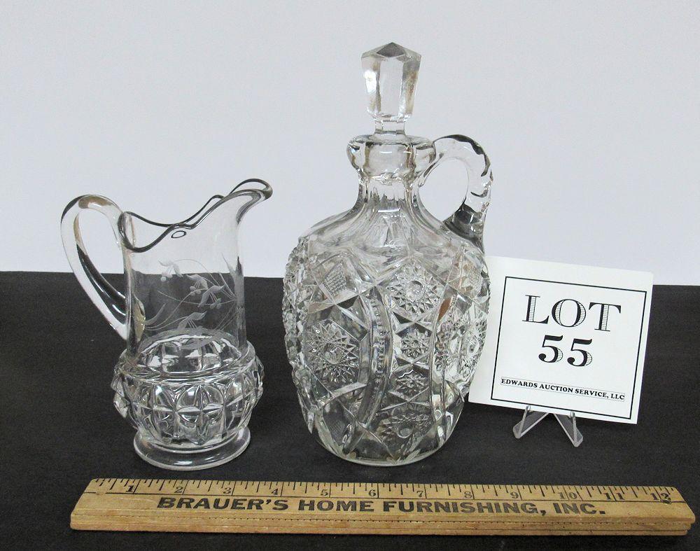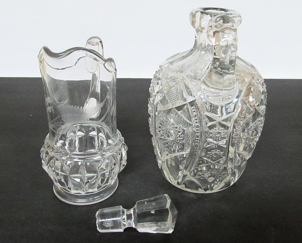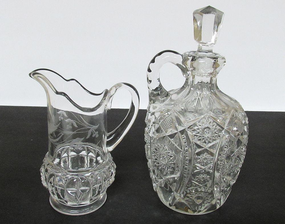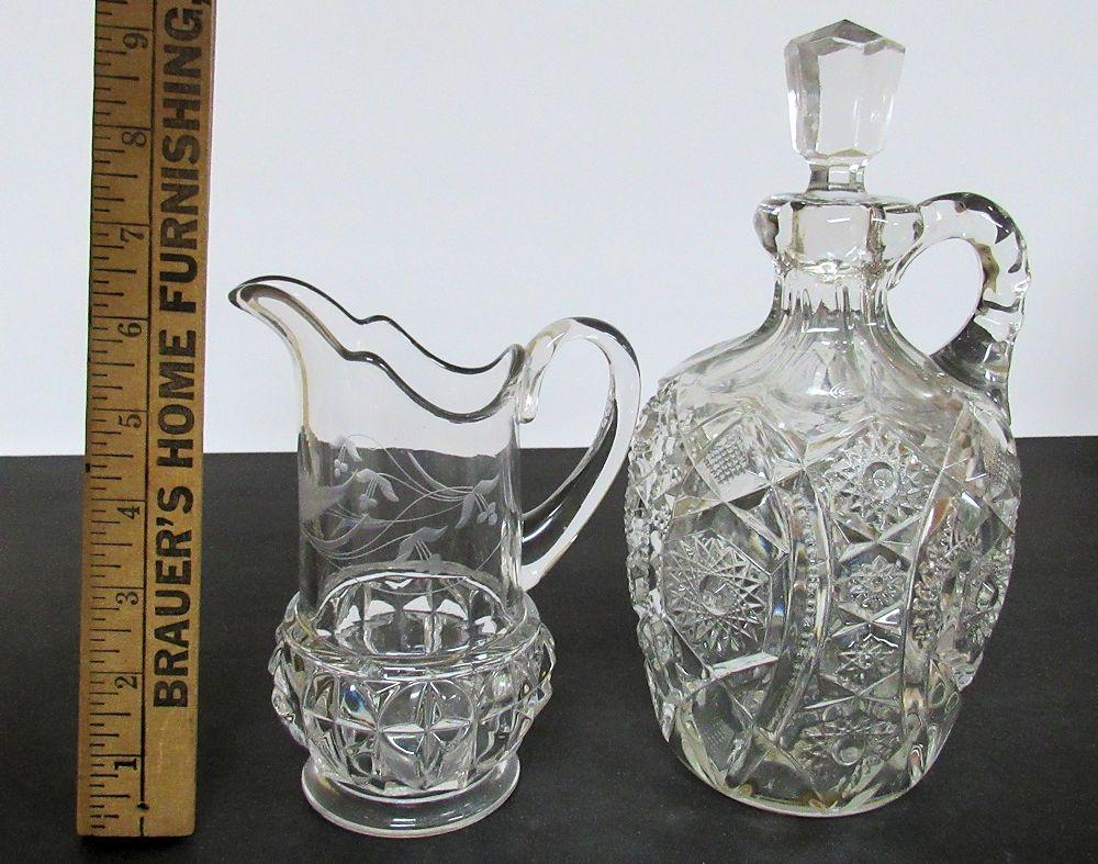 Antique Glass Pitcher and Decanter, Read Description