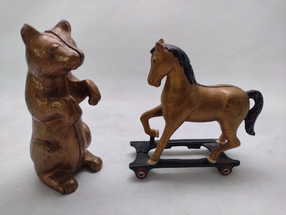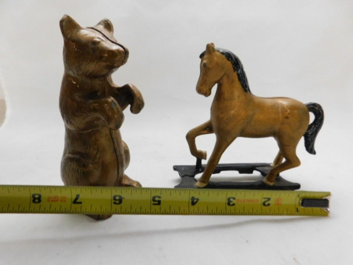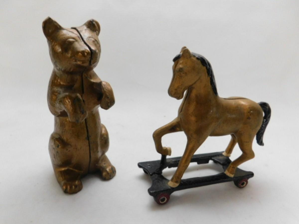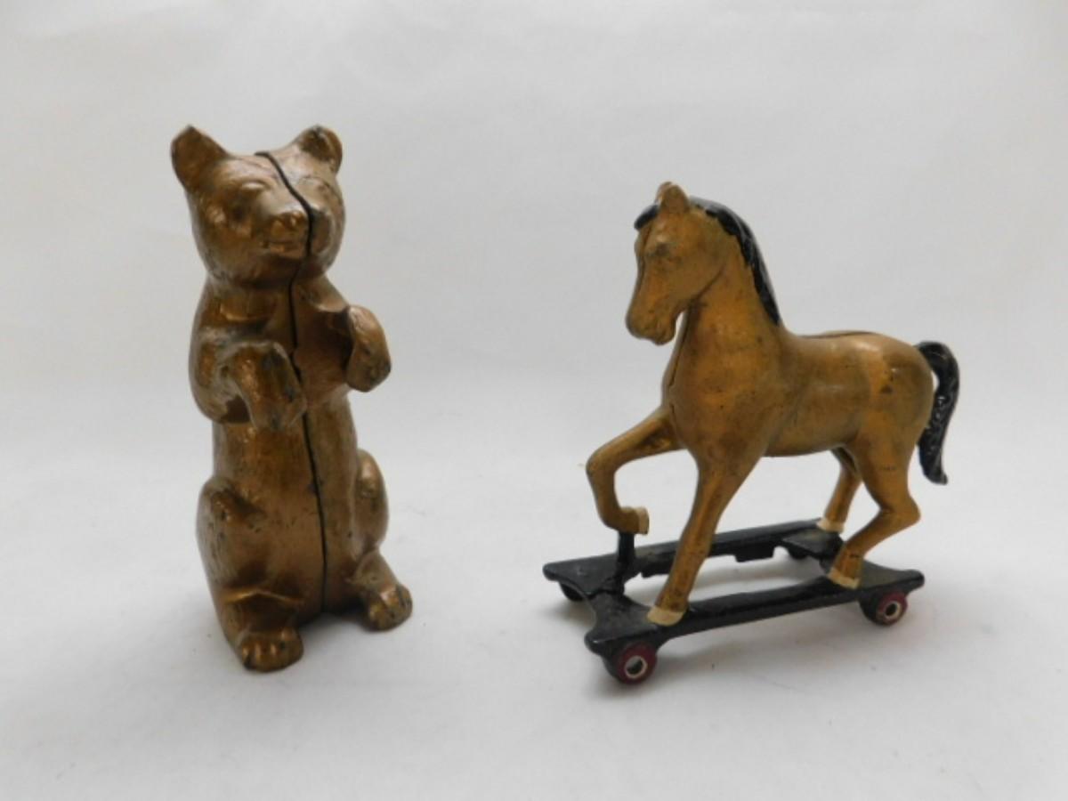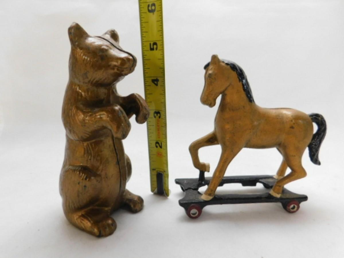 Pair of Cast Metal Coin Banks includes A. C. Williams Standing Bear and Pull Horse