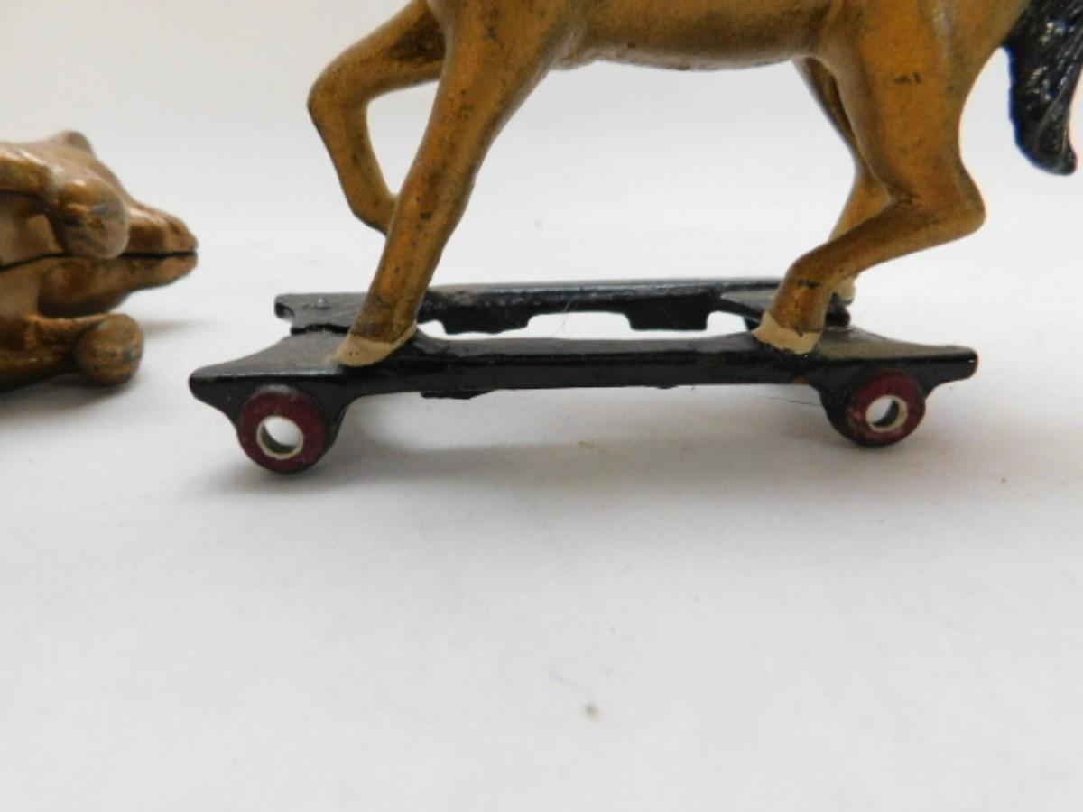 Pair of Cast Metal Coin Banks horse has wheels missing