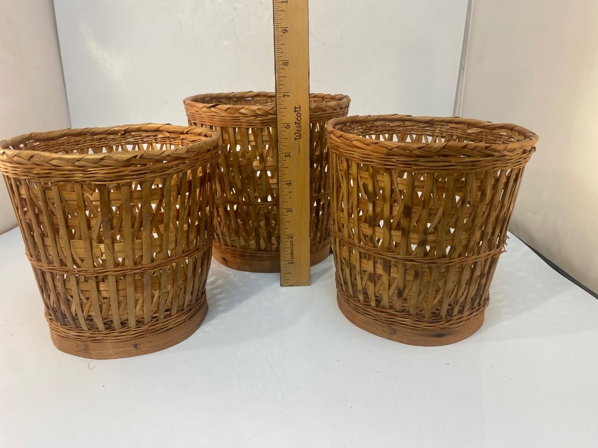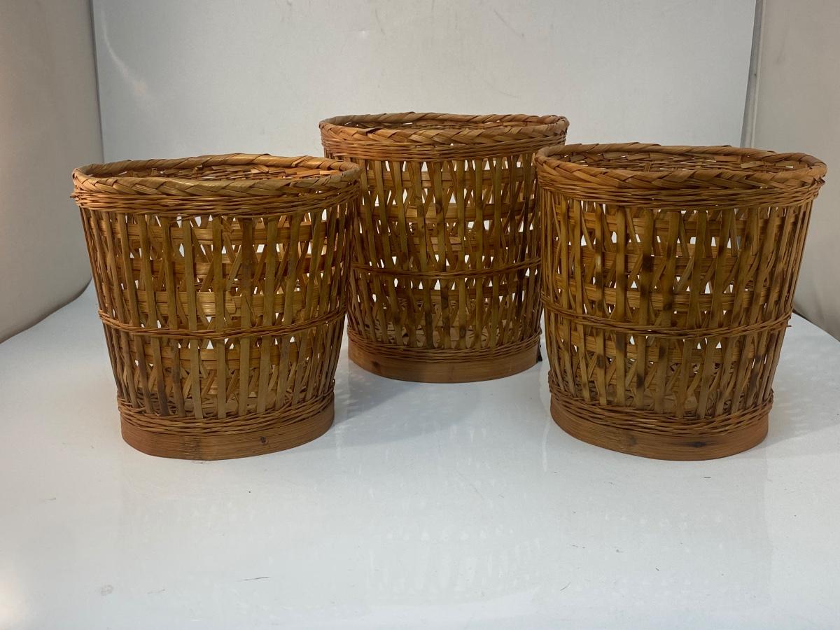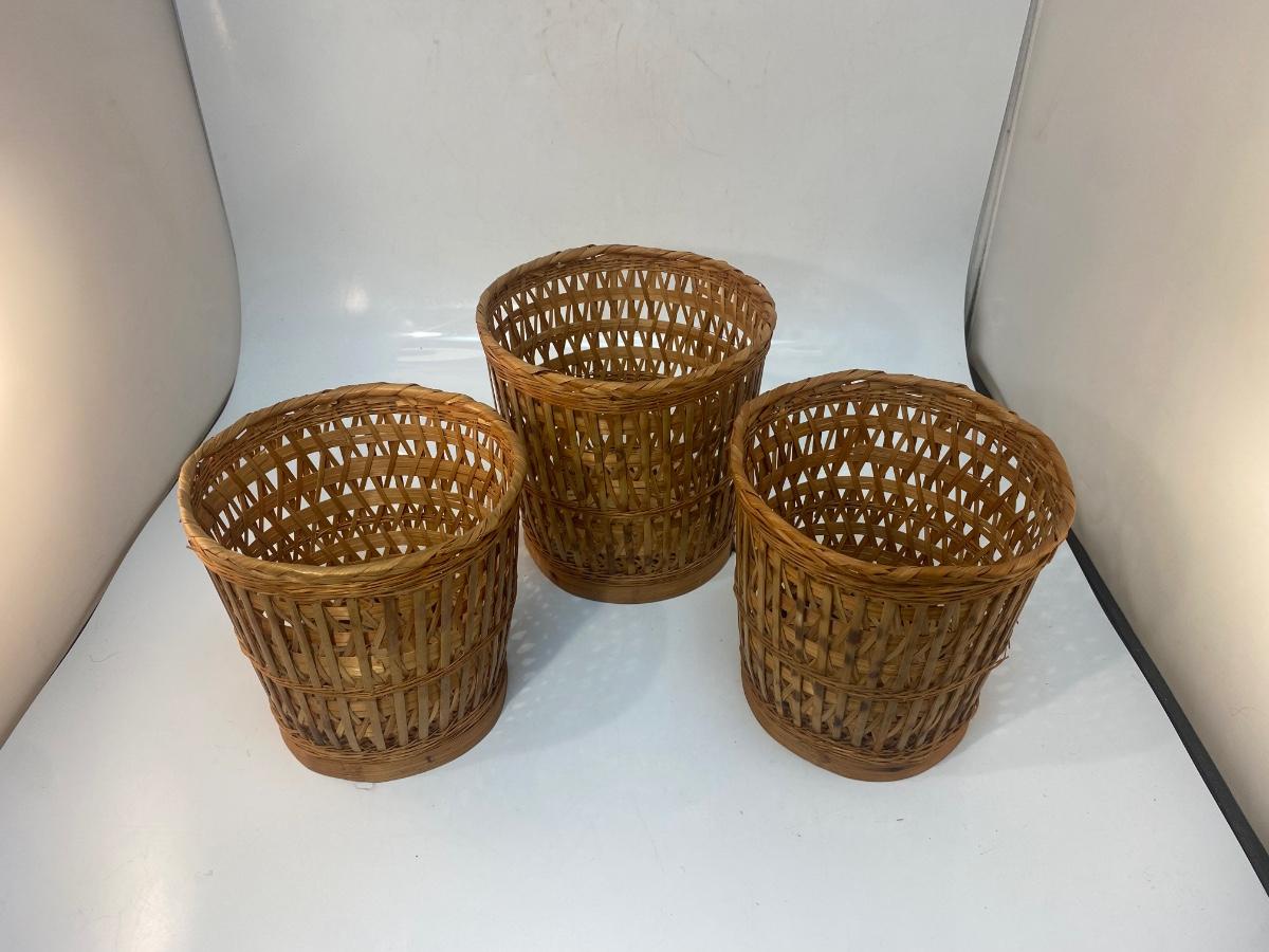 Set of Woven Rattan Reed Matching Baskets Slight Size Variation