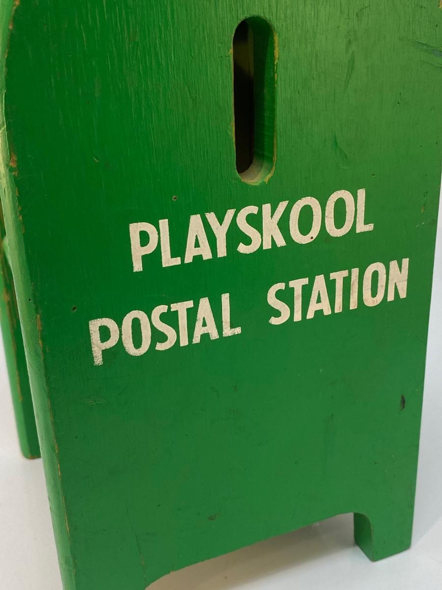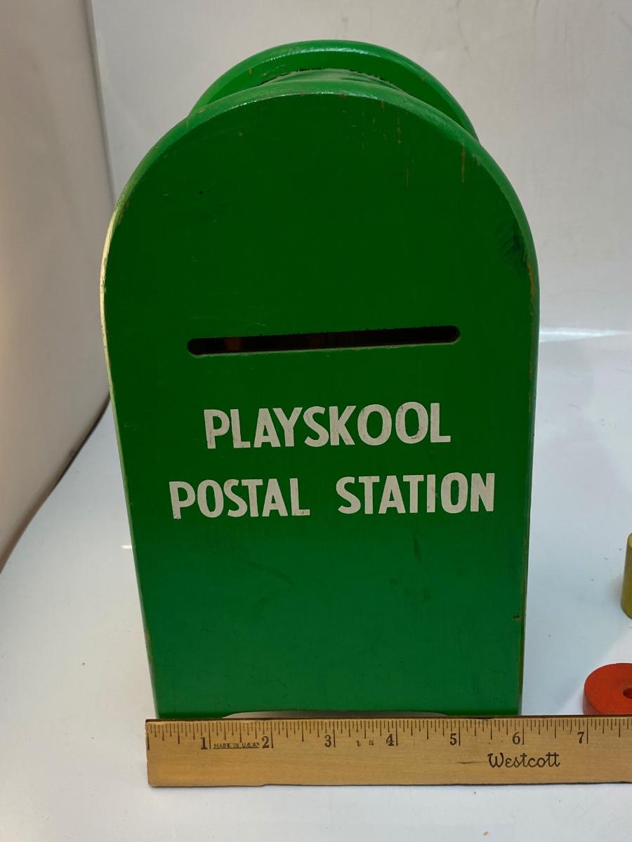 Vintage Wood Playskool Postal Station Wood Block Shape Sorter Mailbox