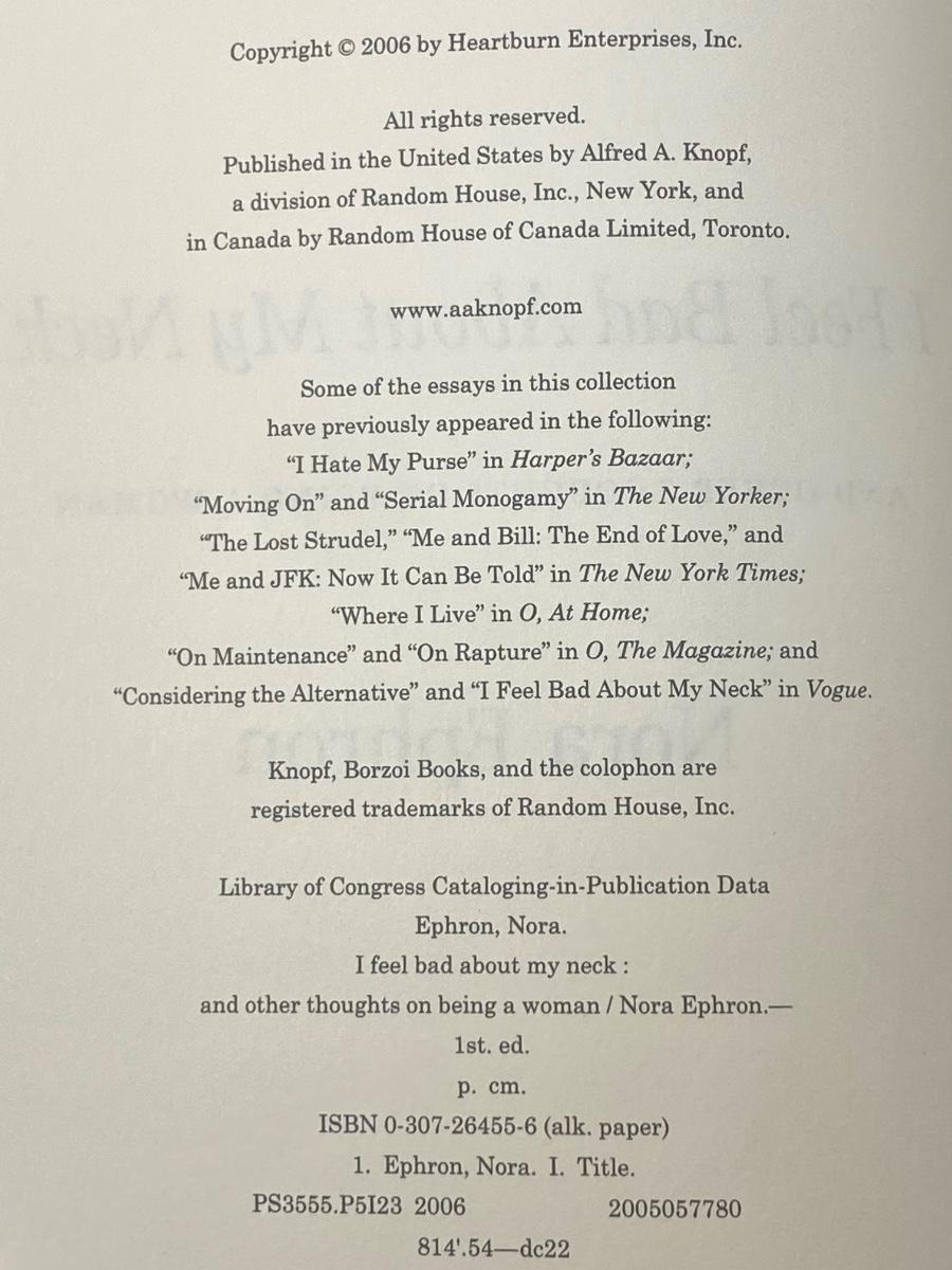 I Feel Bad About My Neck and Other Thoughts on Being a Woman by Nora Ephron Story Essay Filled Book