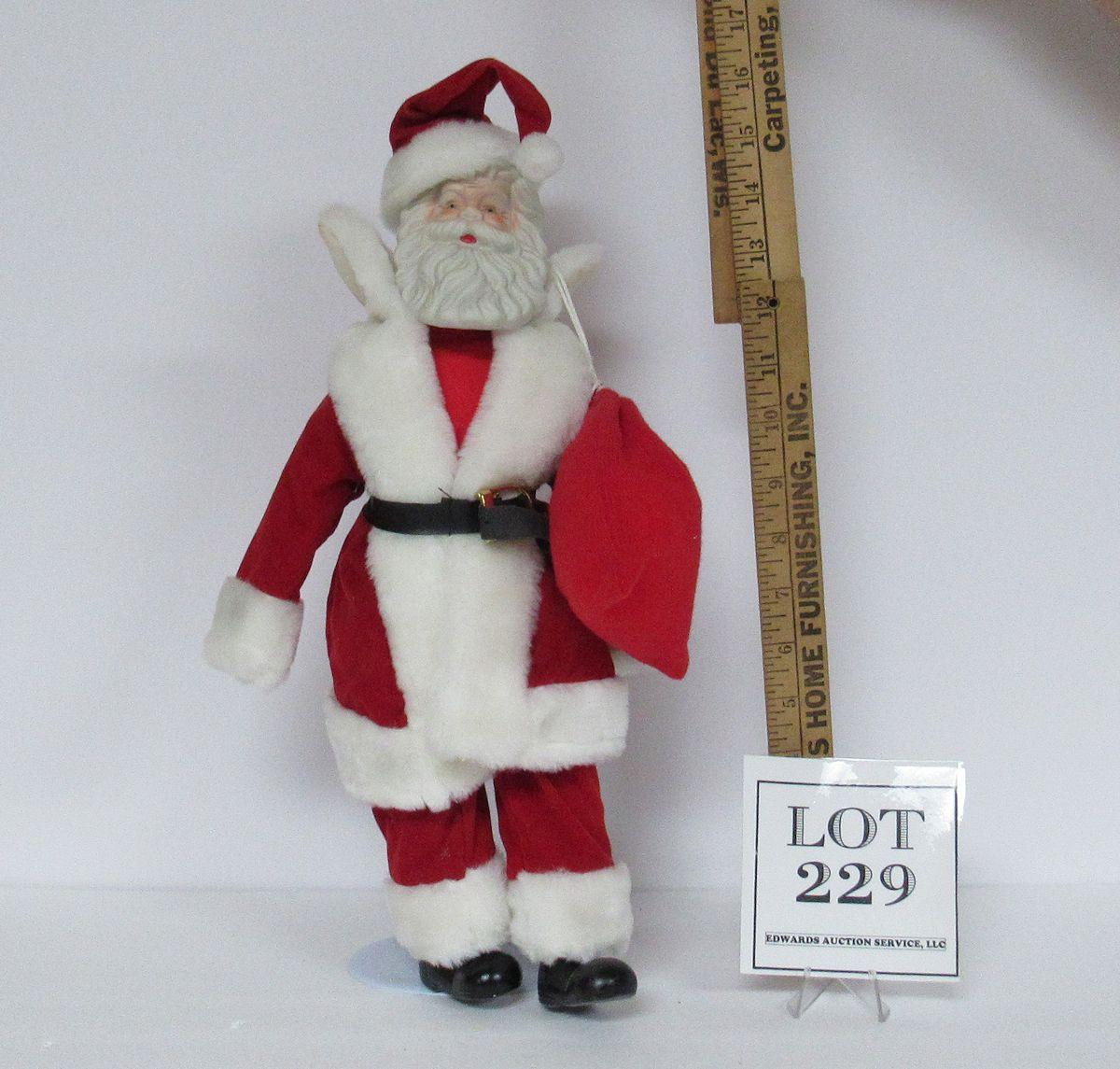 Bisque and Fabric Santa Doll on Stand