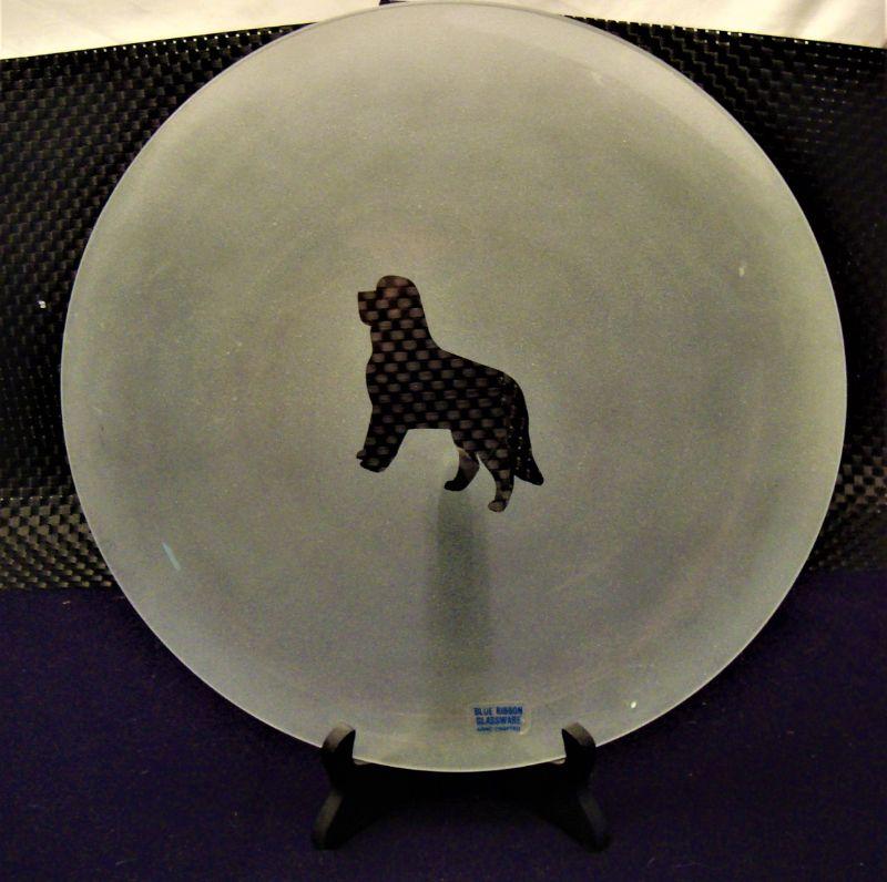 11.5": Blue Ribbon Glassware Serving Plate, Saint Bernard Dog, Frosted Glass. In Good Condition, no chips or cracks noticed.