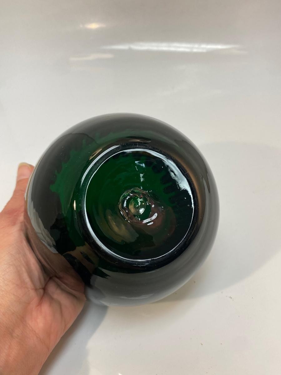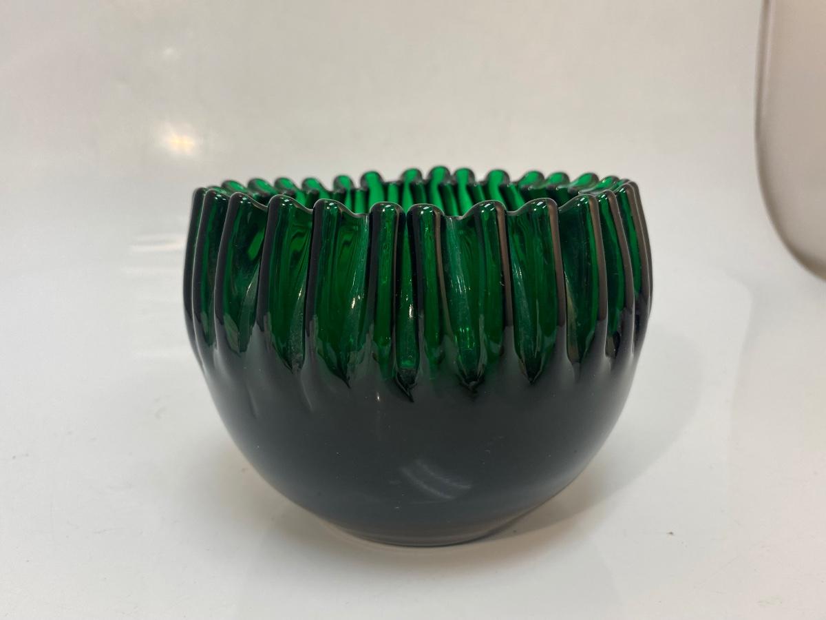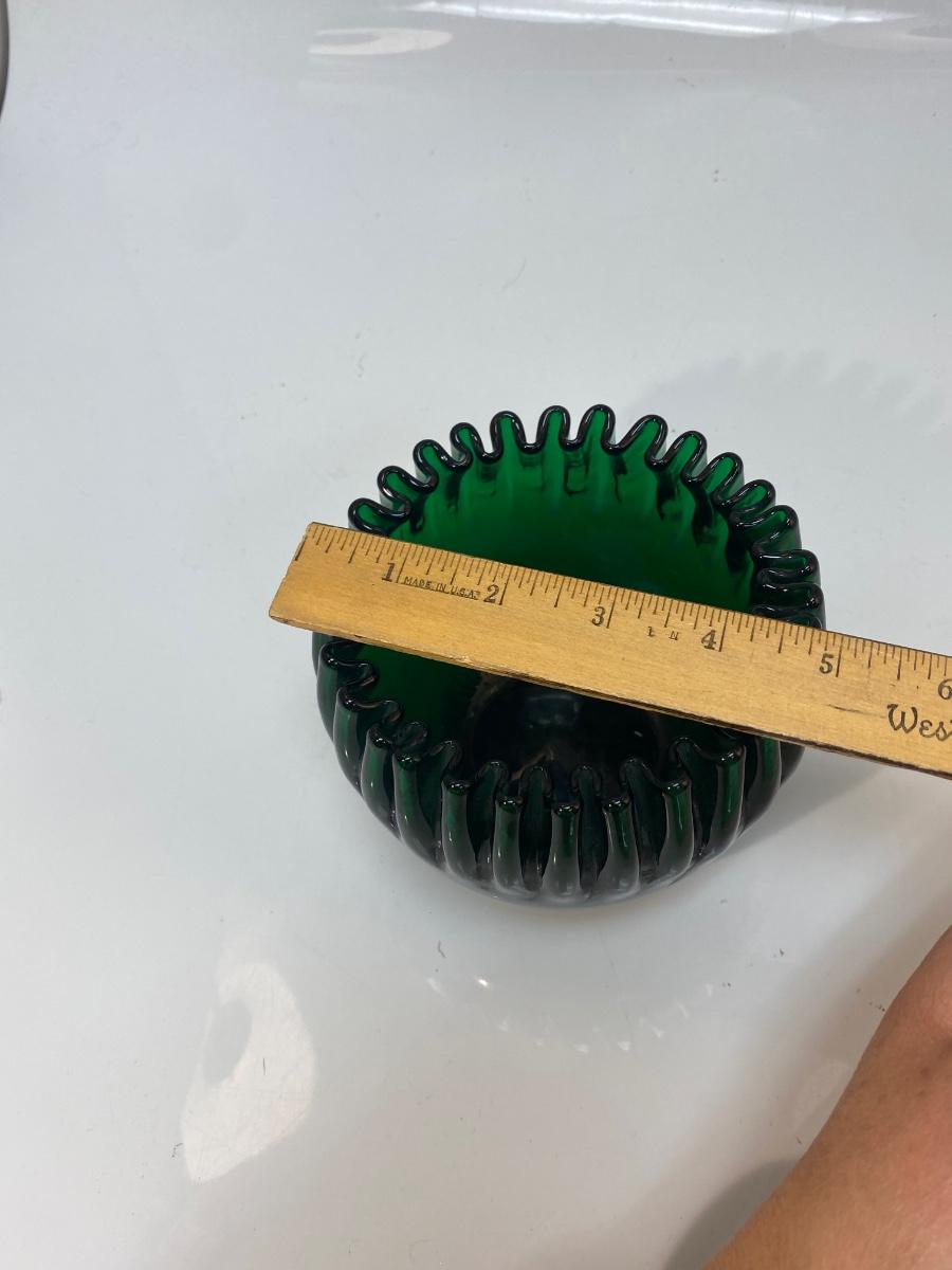 MCM Midcentury Blenko Emerald Dark Green Crimped Edge Ribbed Art Glass Rose Bowl Dish