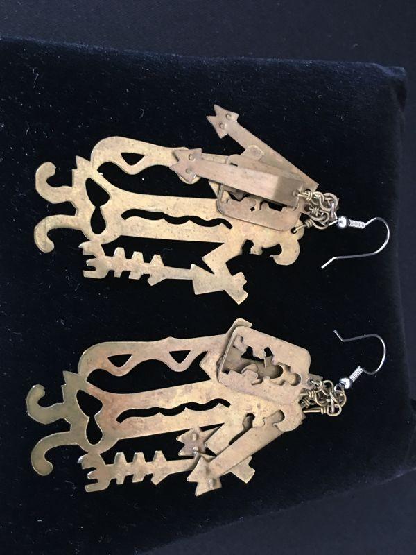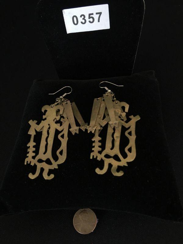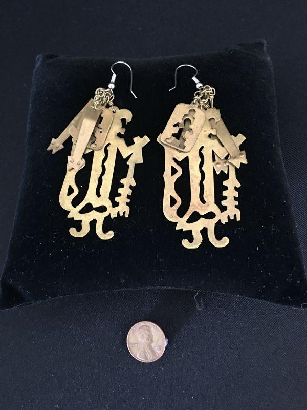 Brass Vintage Native American Indian Inspired Hook Earrings Lot # 357