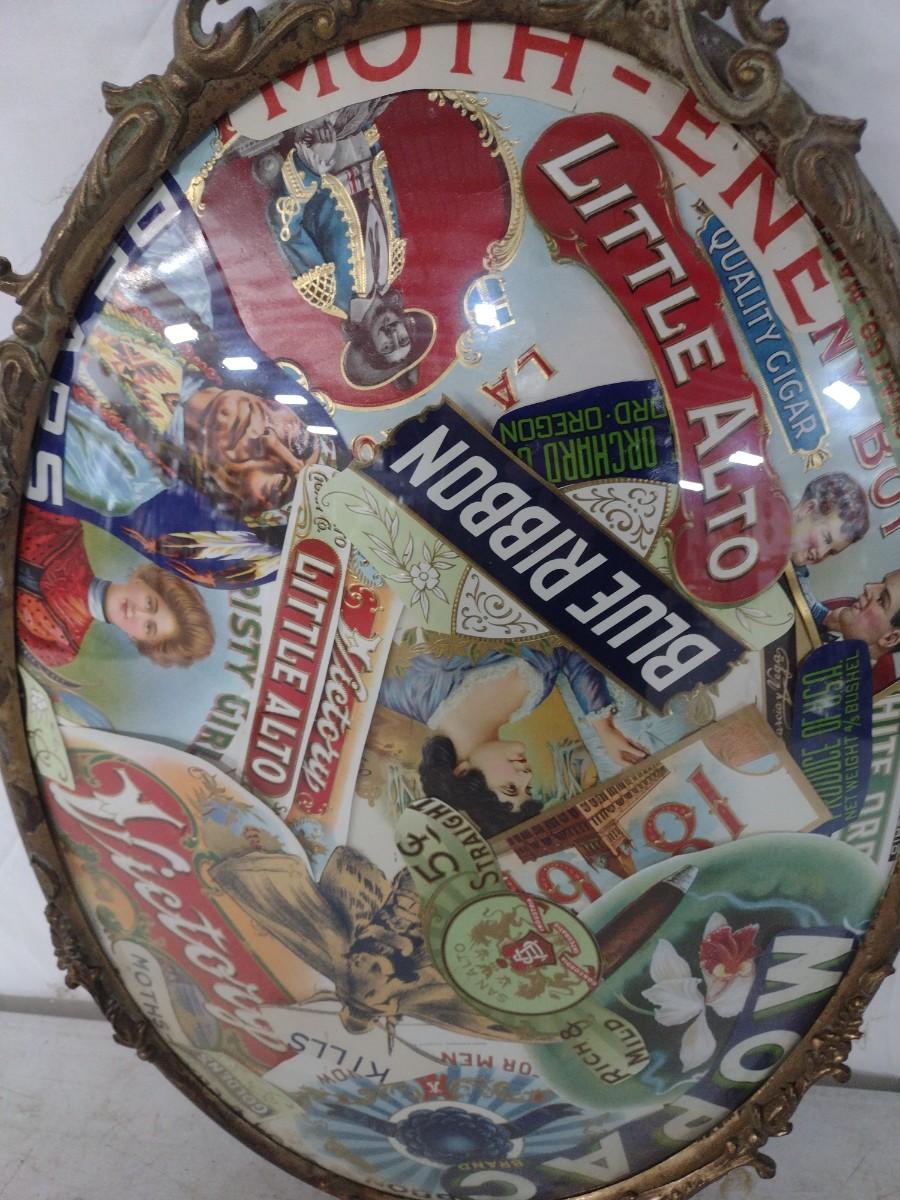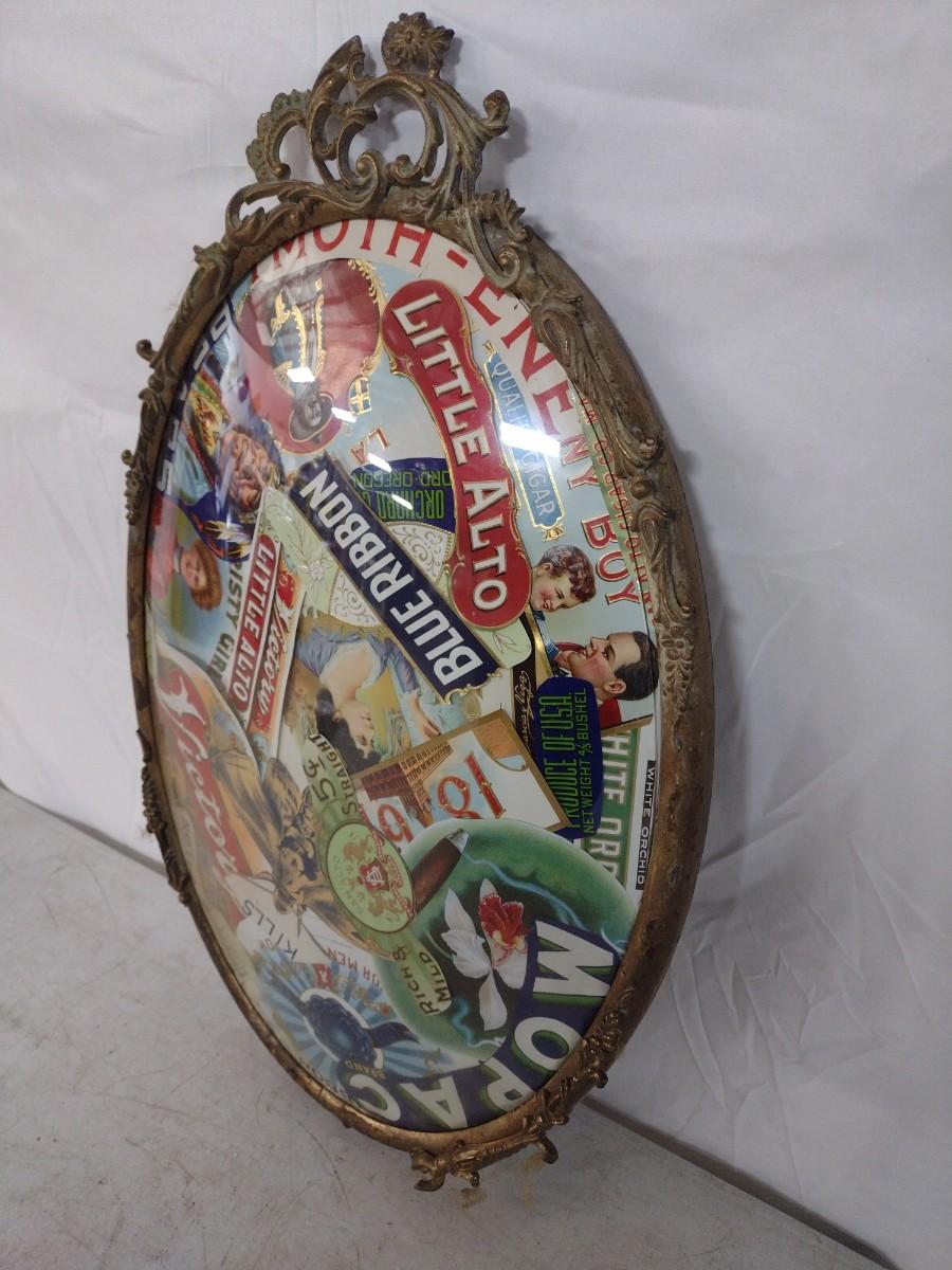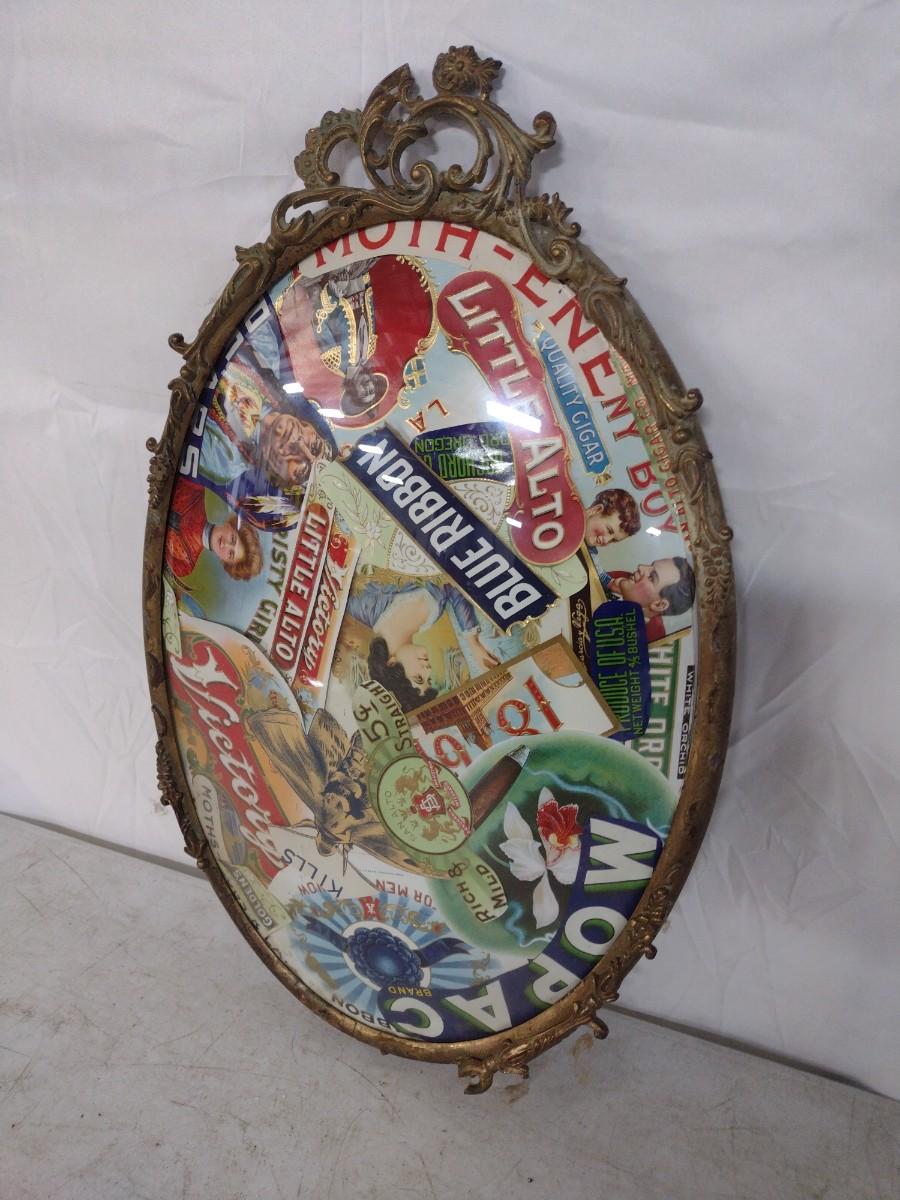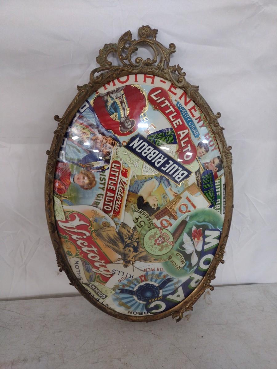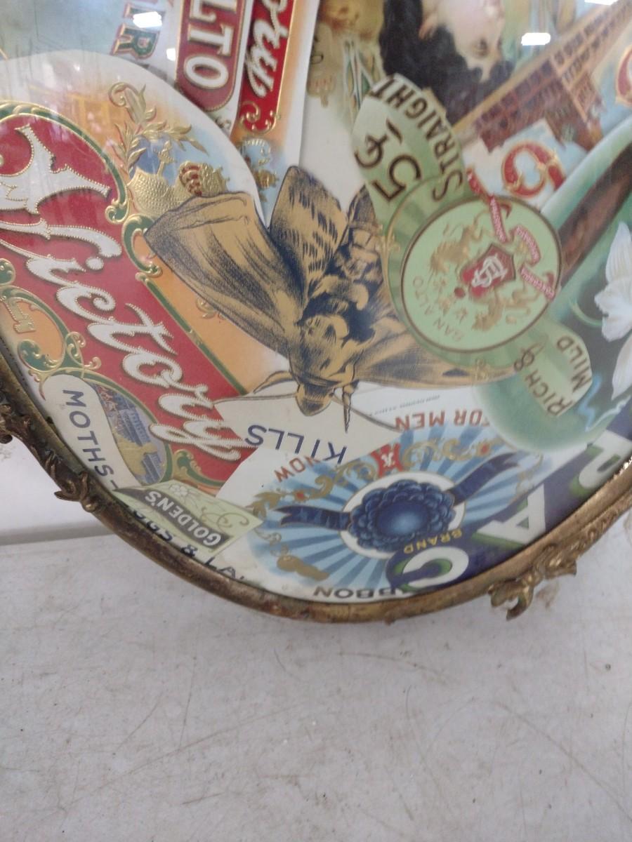 Bubble Glass Wall Art Collage Vintage Cigar Labels. Frame has some missing fretting as shown