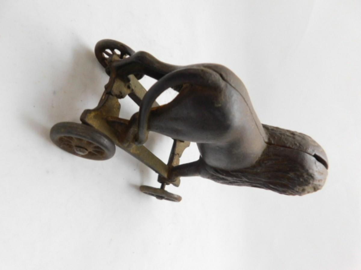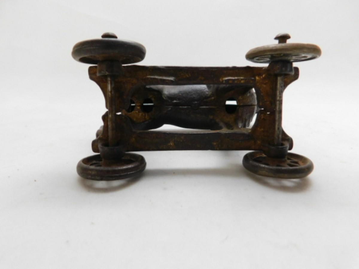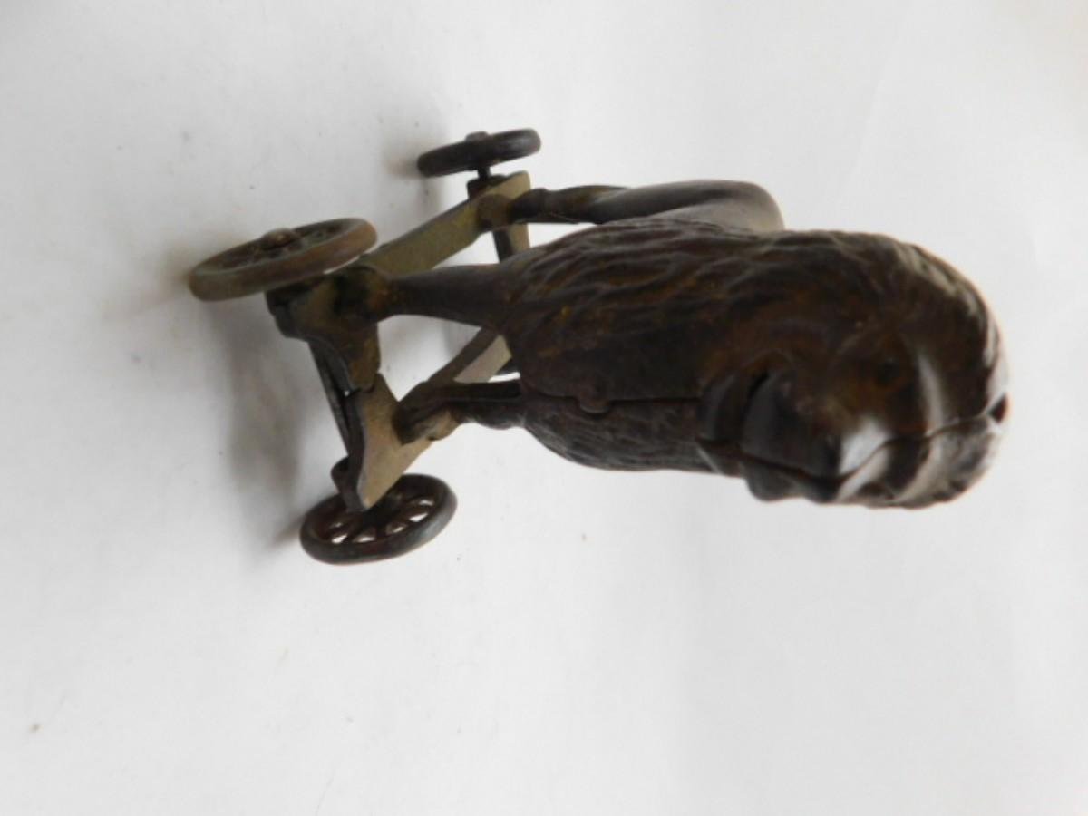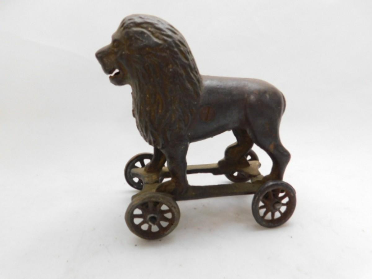 Vintage Cast Iron Lion Pull Wagon Coin Bank