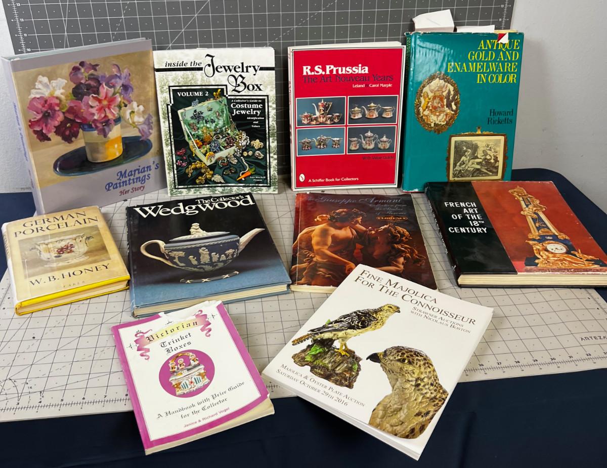 COLLECTOR BOOKS: Wedgewood, Armani, Jewelry French Art ETC.