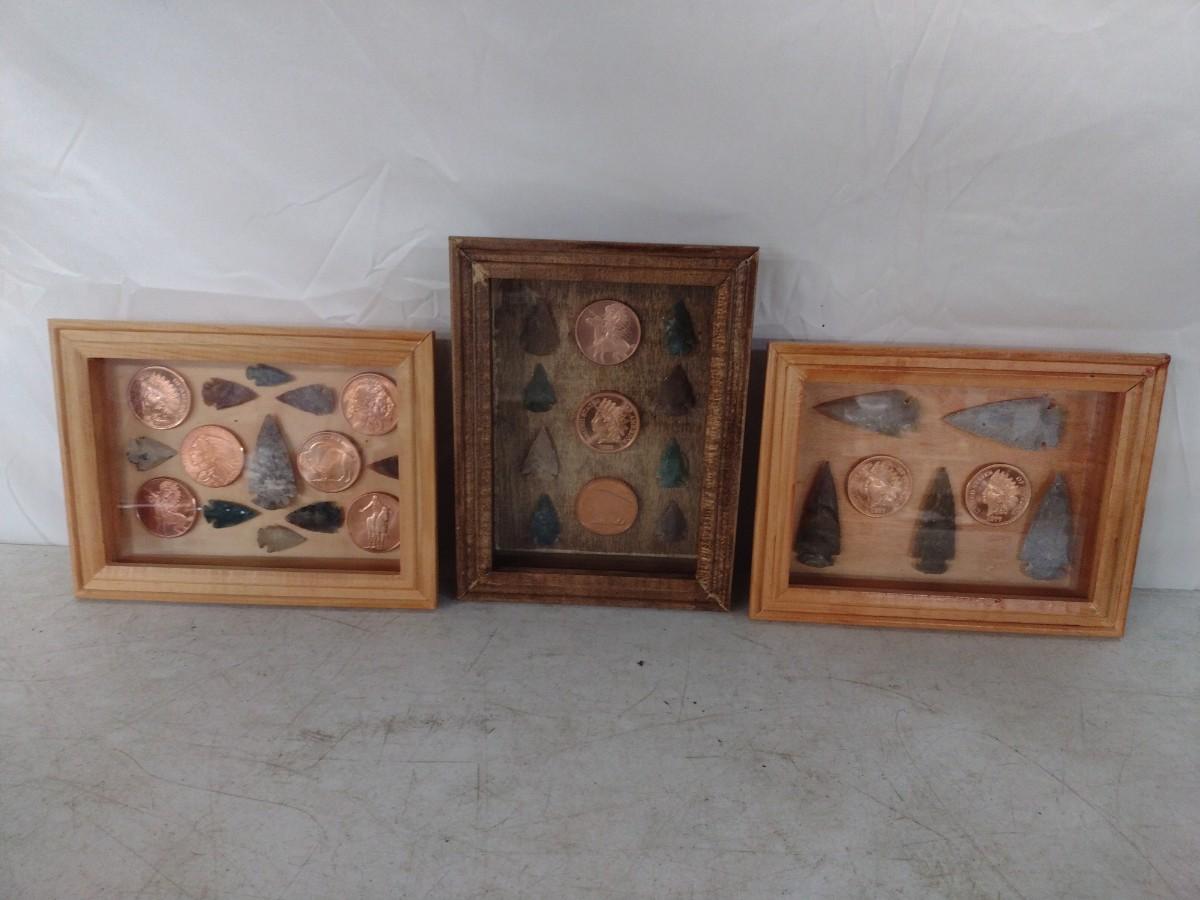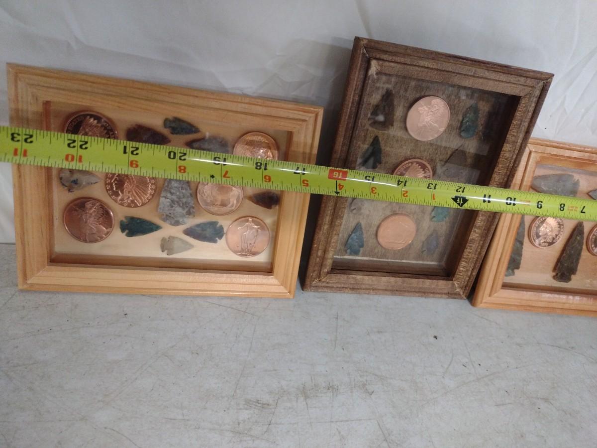 Three Native American Indian Head .999 Once Copper Round Sets in Shadow Boxes