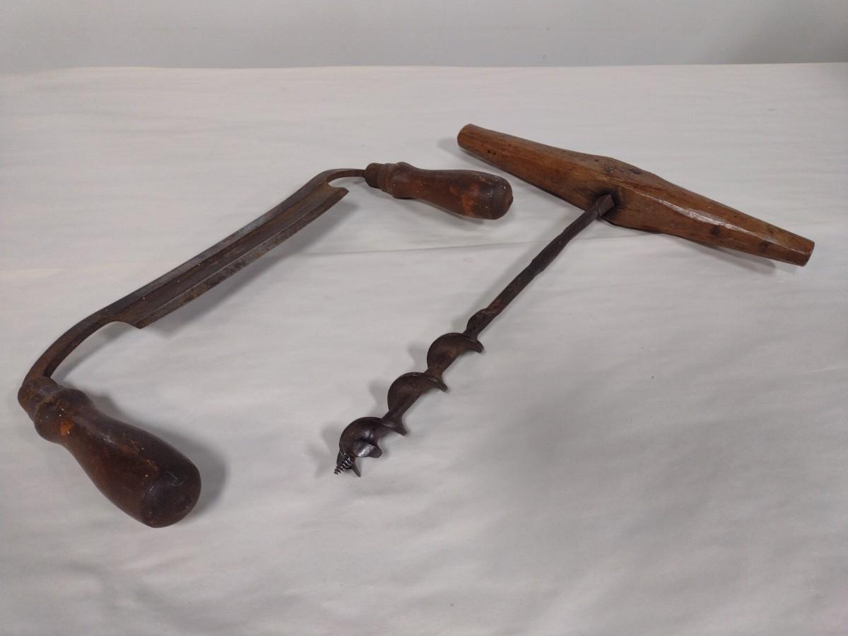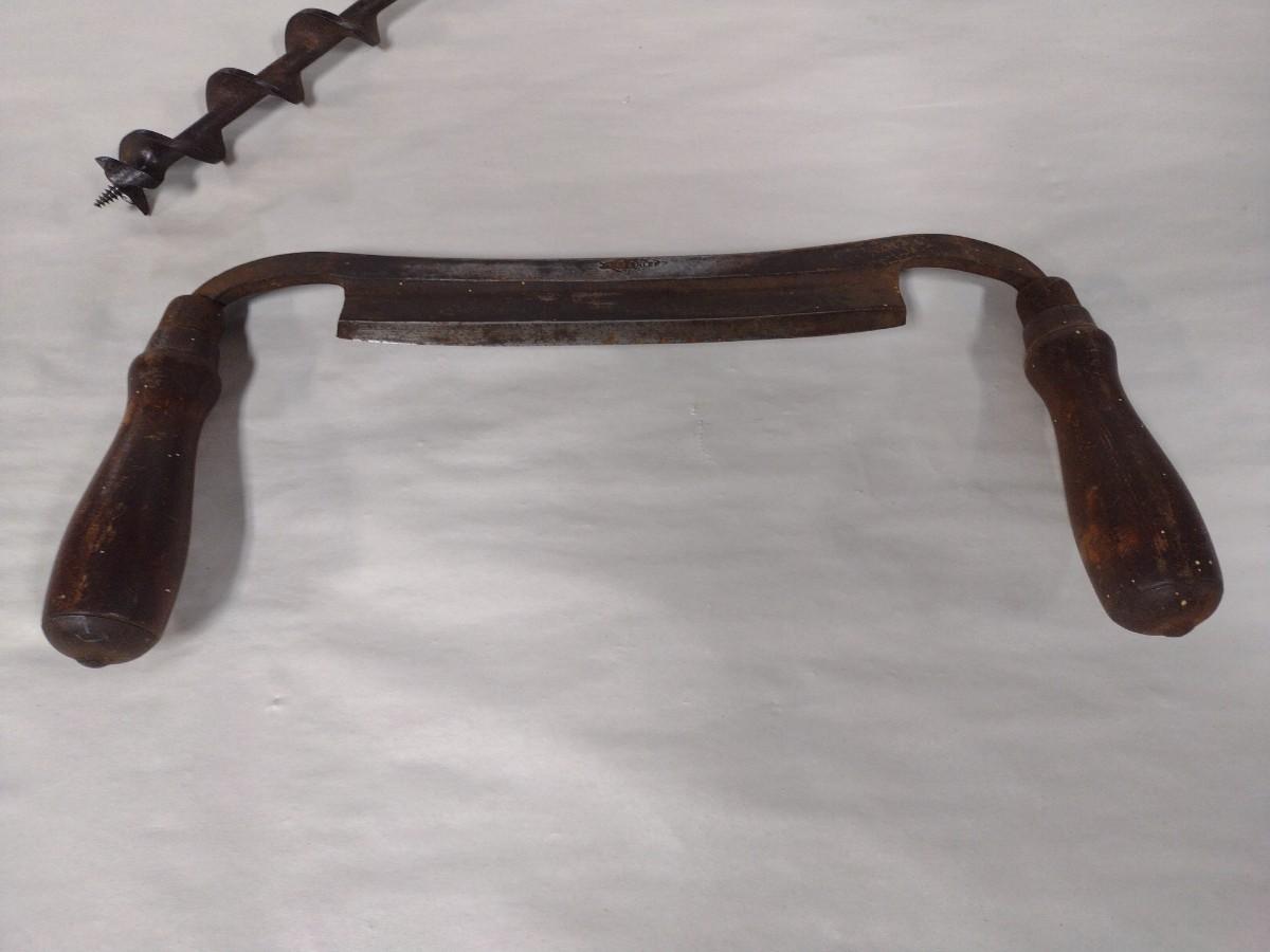Pair of Vintage Tools includes Draw Knife and Hand Drill