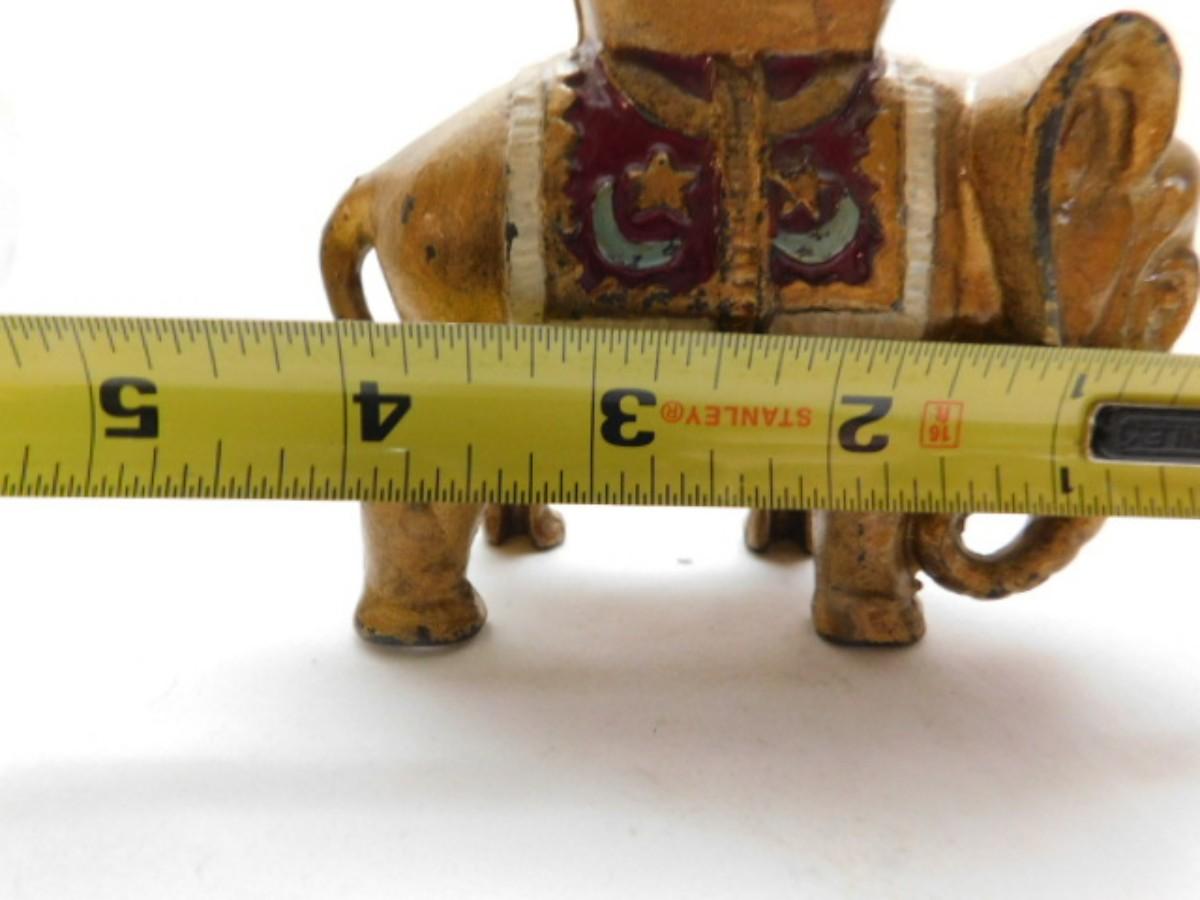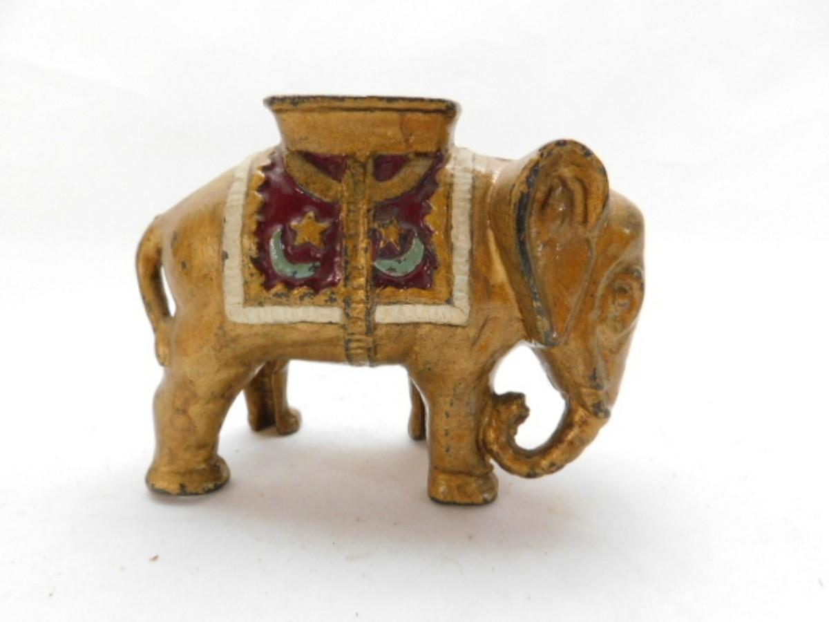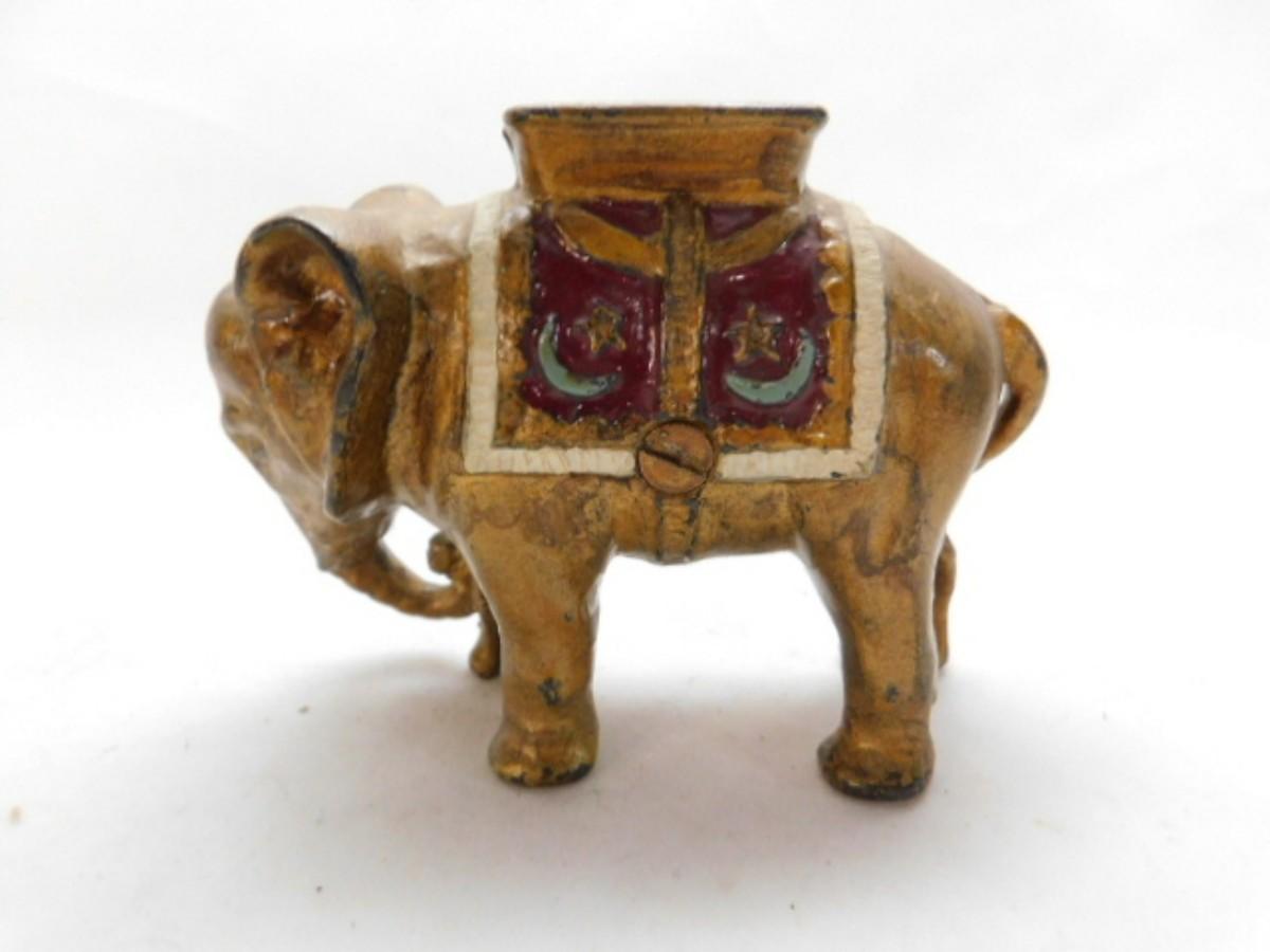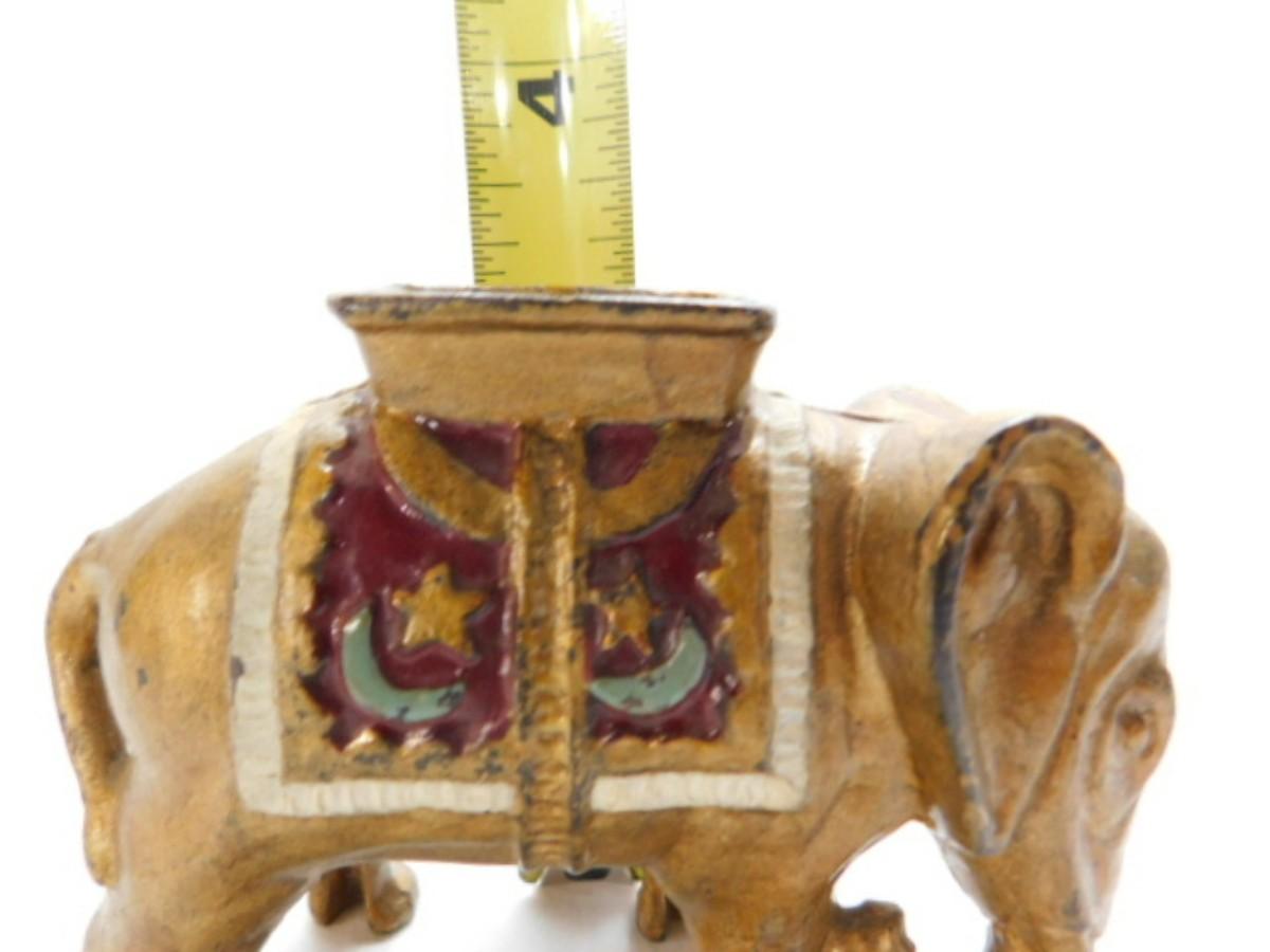 Vintage A. C. Williams Cast Iron Elephant with Riders Basket Coin Bank