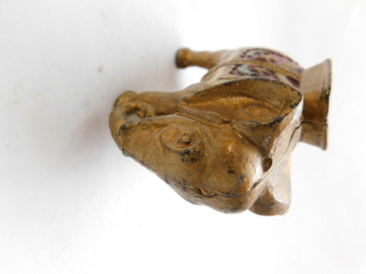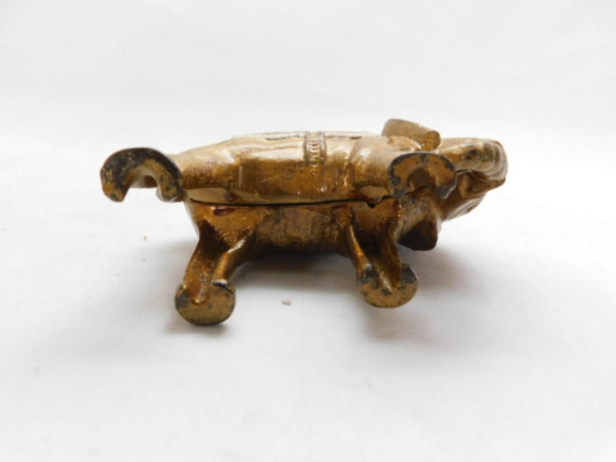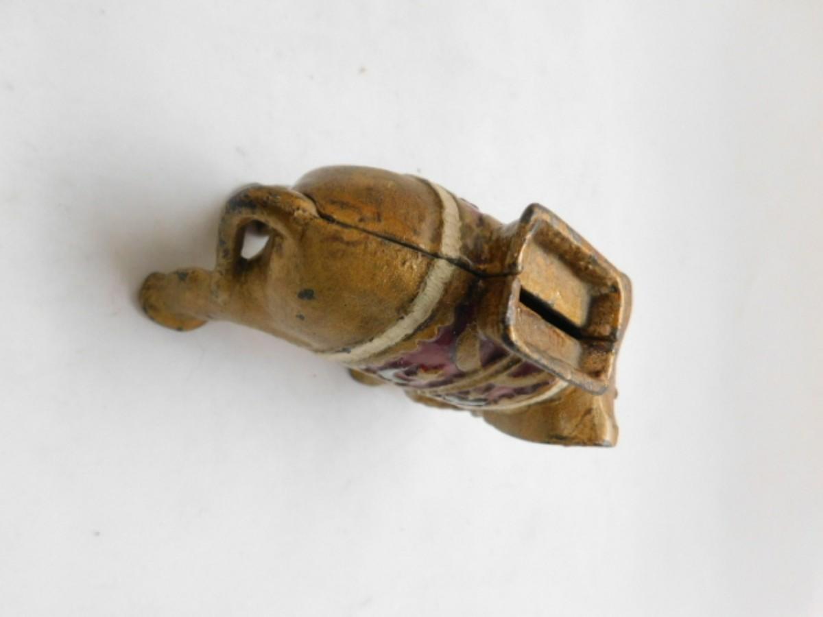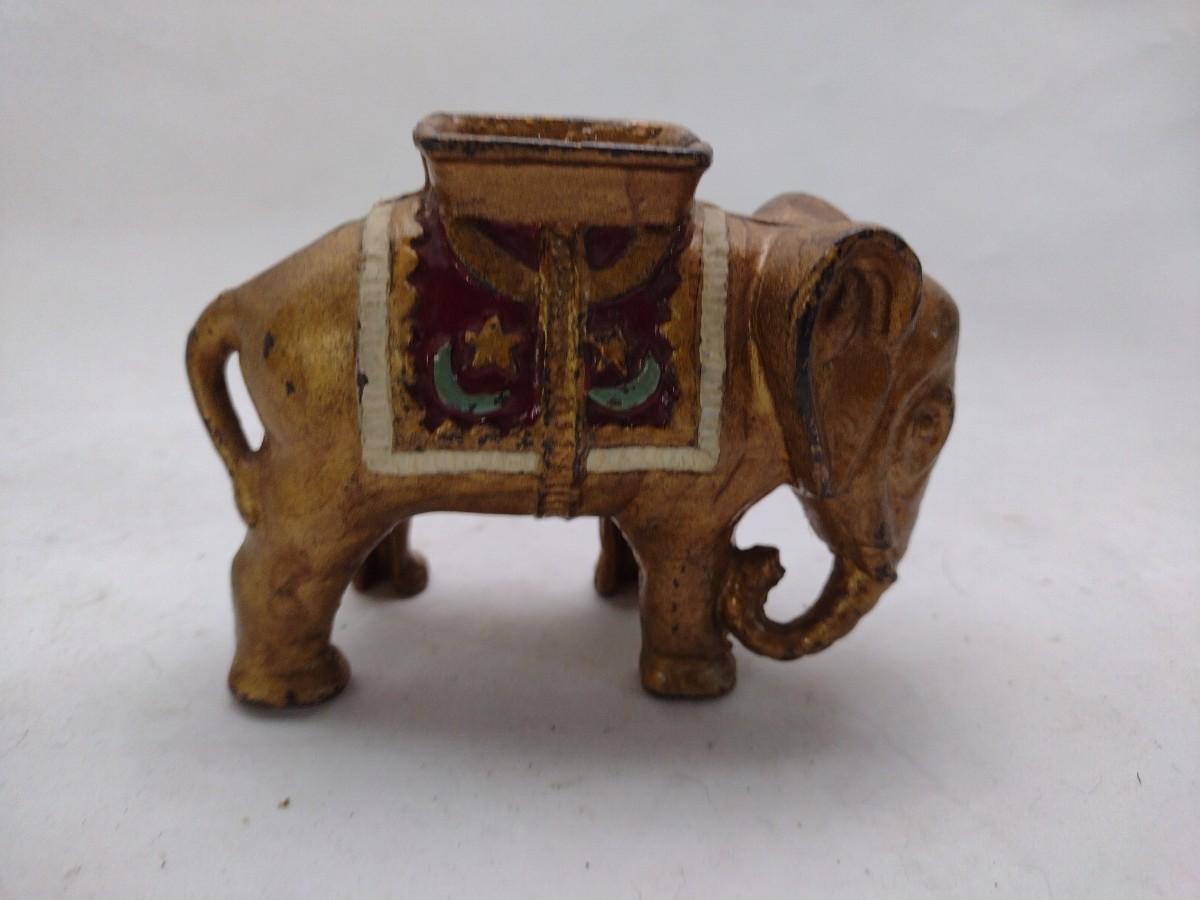 Vintage Cast Iron Elephant with Riders Basket Coin Bank