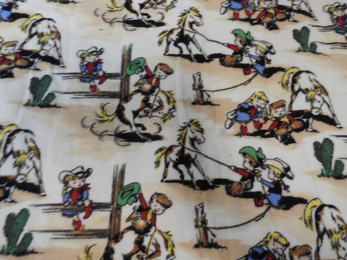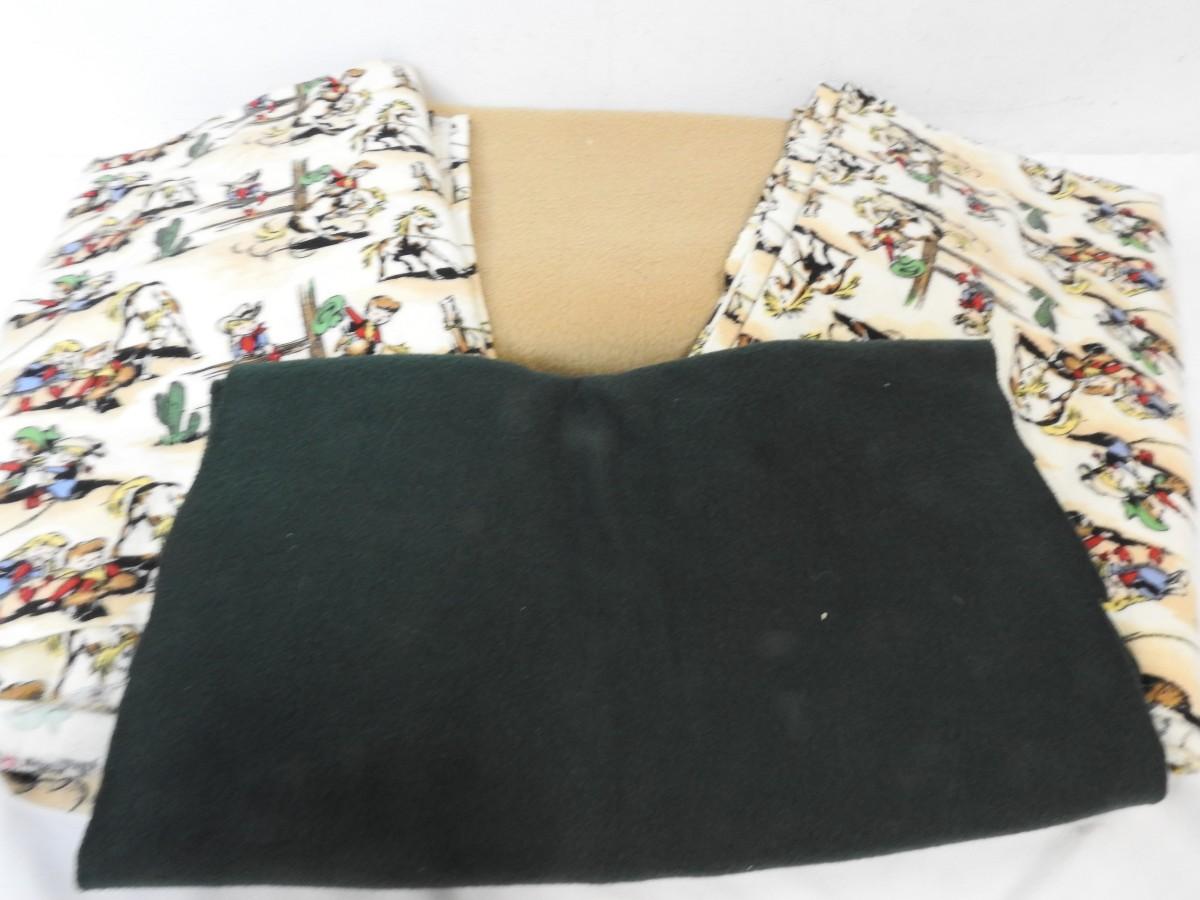 Fabric: Large Pieces: Flannel, Juvenile Cowboy Print & Solid Tan & Dk Green