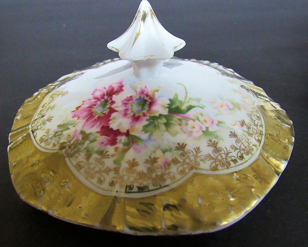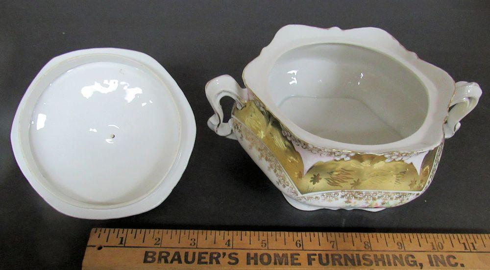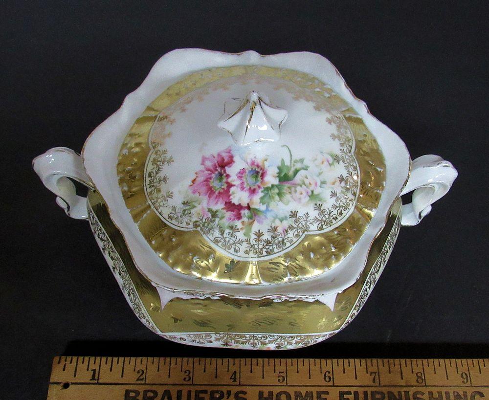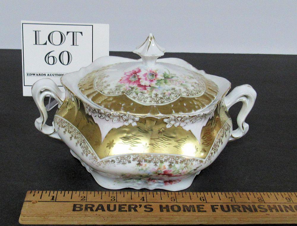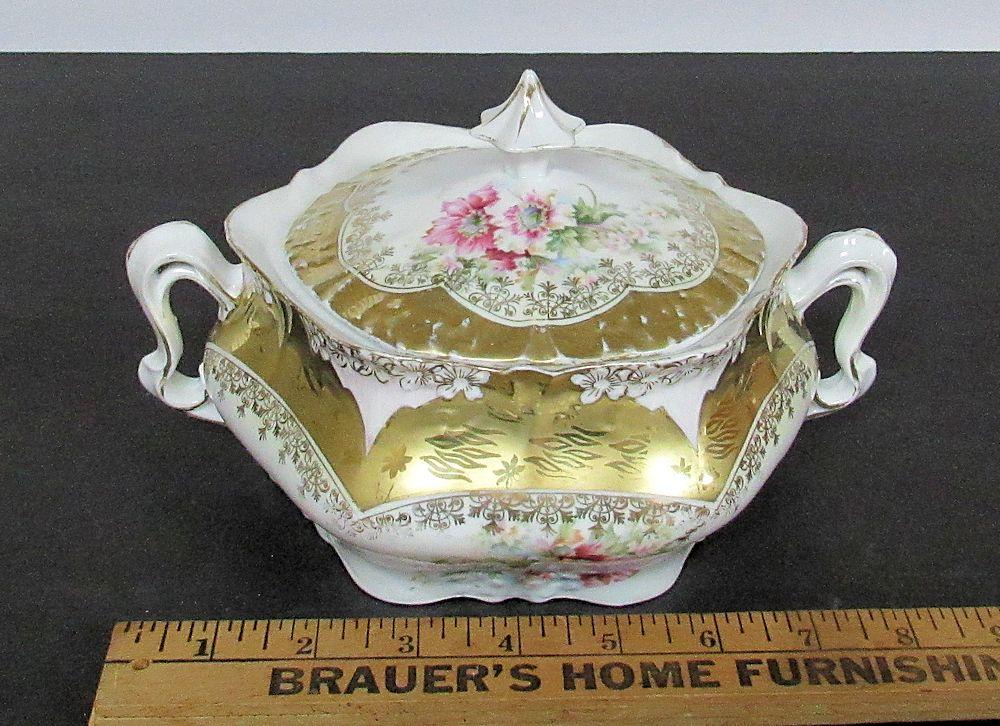 Good condition. The only thing I note is some gold trim loss in spots. Fancy and pretty. Shipping is available at shipping cost plus $5.00 handling fee on up to 8 lots, $10.00 handling fee on 9 or more lots or two boxes.