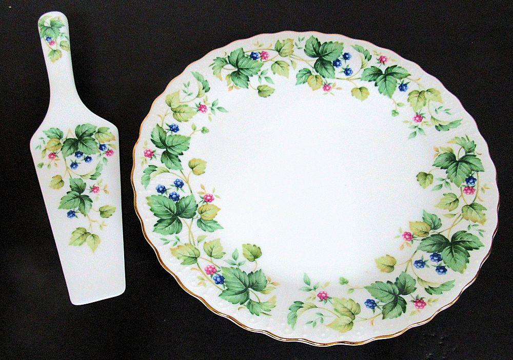 Floral Cake Plate and Server, Andrea by Sadek, Vinyard Pattern, Retired