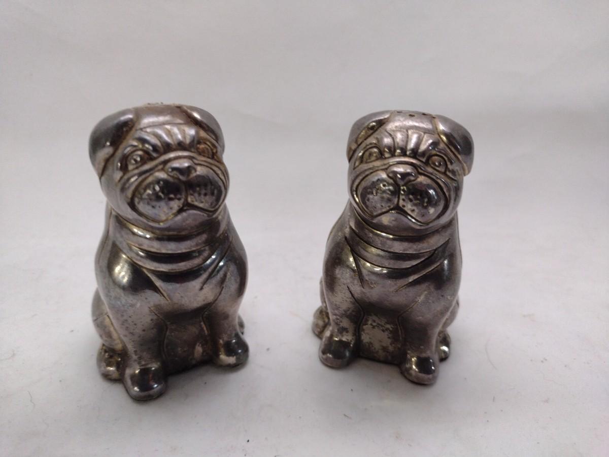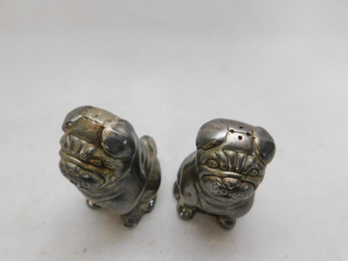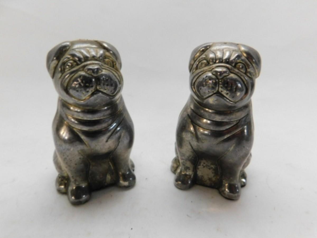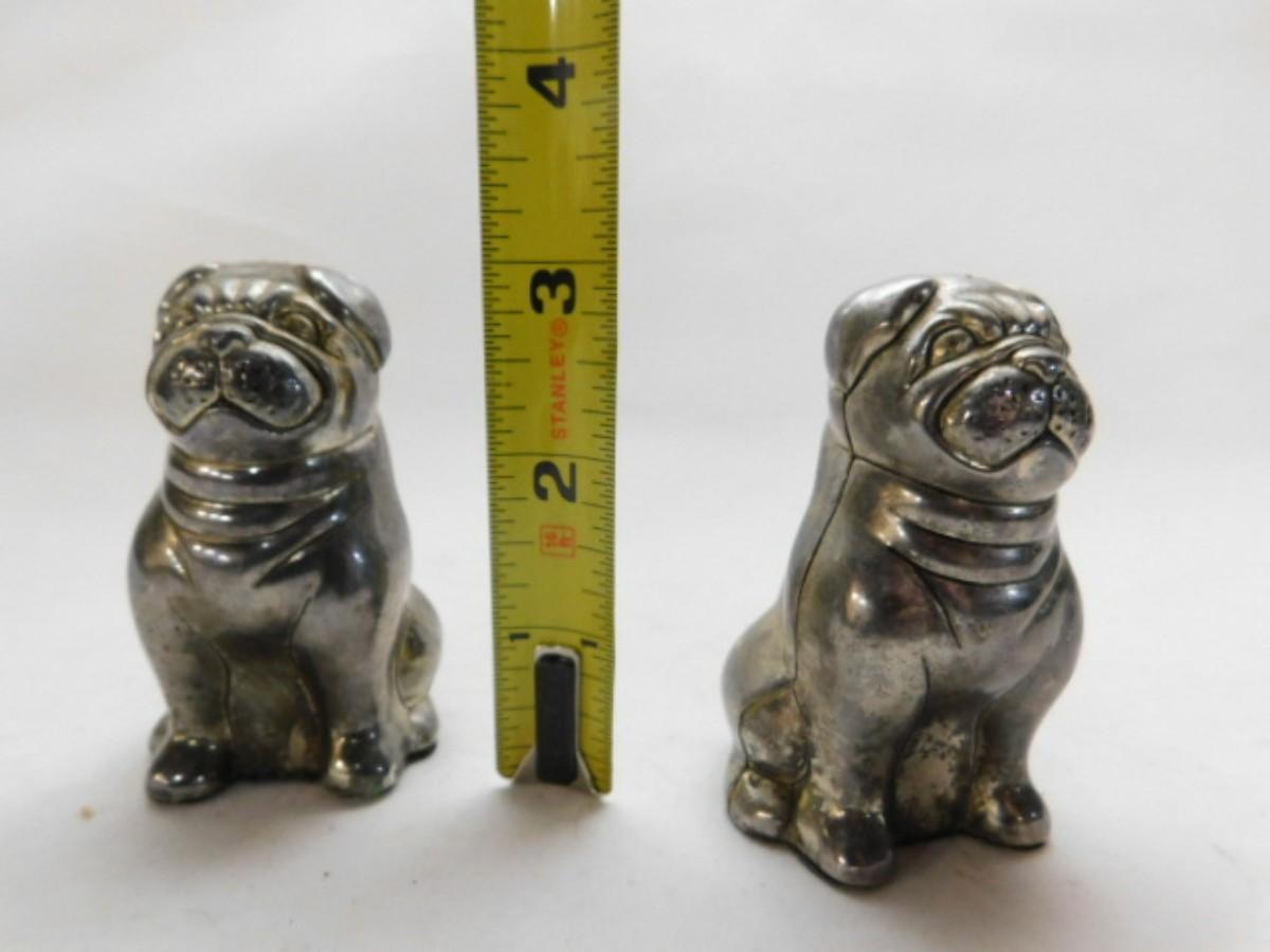 Vintge Godinger Silver Company Cast Metal Plated Dog Salt & Pepper Shakers