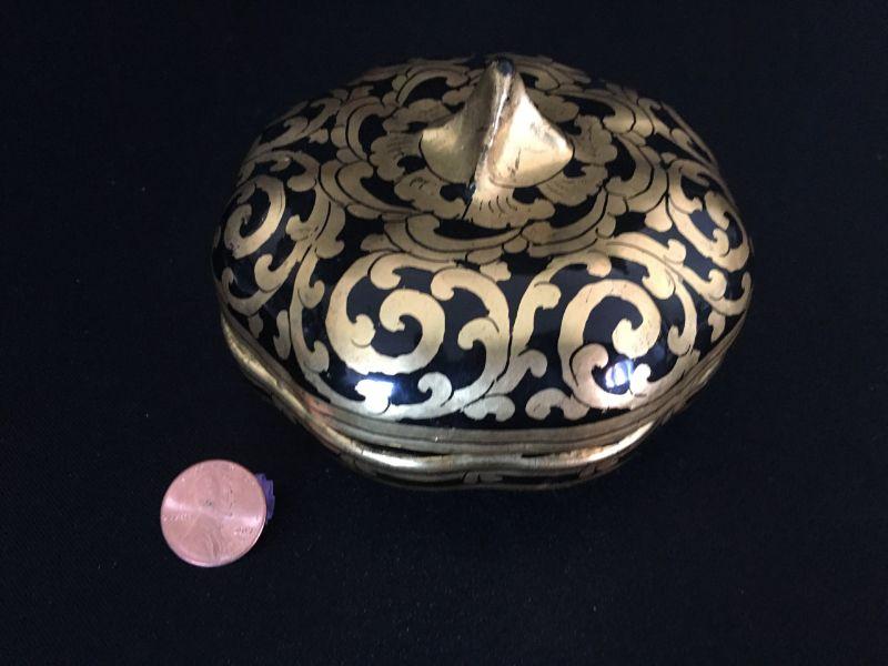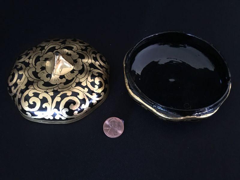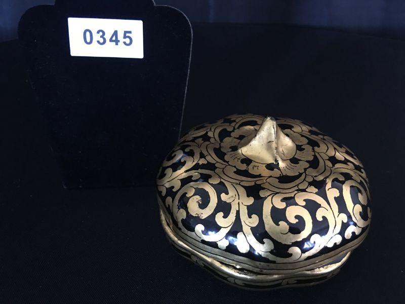 Gold/Black Lacquered E. Indian Lidded Chrysanthemum Box Lot # 345