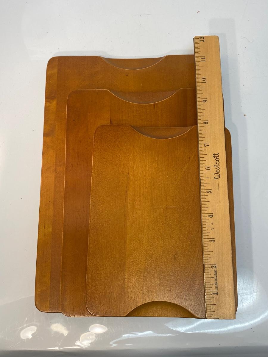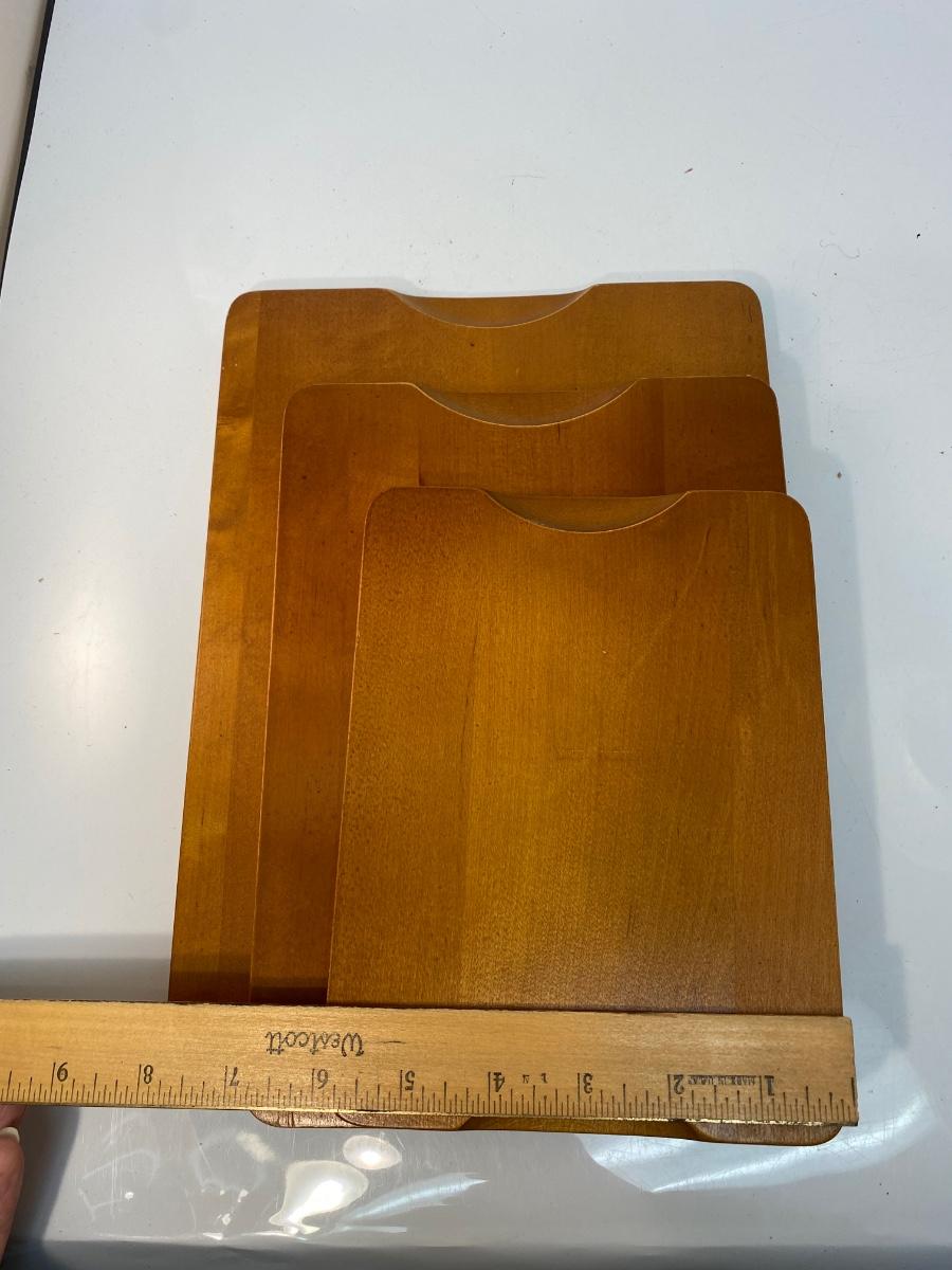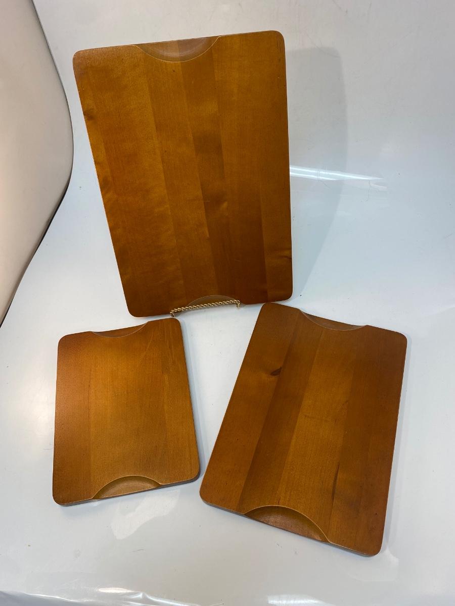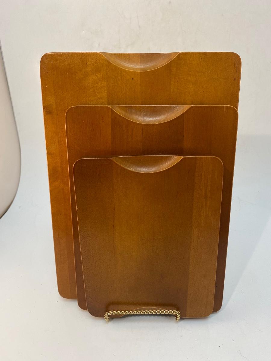 Set of Three Made in Sweden Wood Teak Cutting Serving Boards with Cork Bottoms