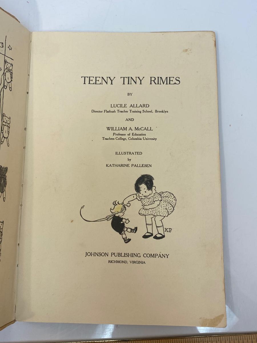 Antique Kids Rhyme Cut and Pate Book Teeny Tiny Rimes by Allard & McCall Used. Pages have been colored on & cut and pasted, Good for display. Copyright 1927.