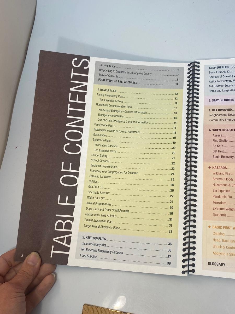 County of Los Angeles Emergency Survival Guide Booklet First Aid Disaster Safety Plan. While it does contain phone numbers and some info for Los Angeles County, there is a lot of info that would be helpful wherever one lives. All fillable pages are blank, unused.