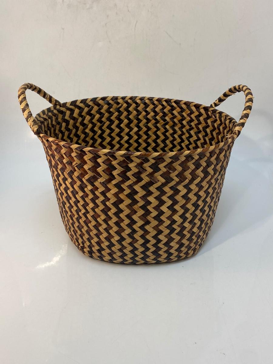 Double Handled Zig Zag Dark Brown Black & Natural Sea Grass Woven Basket