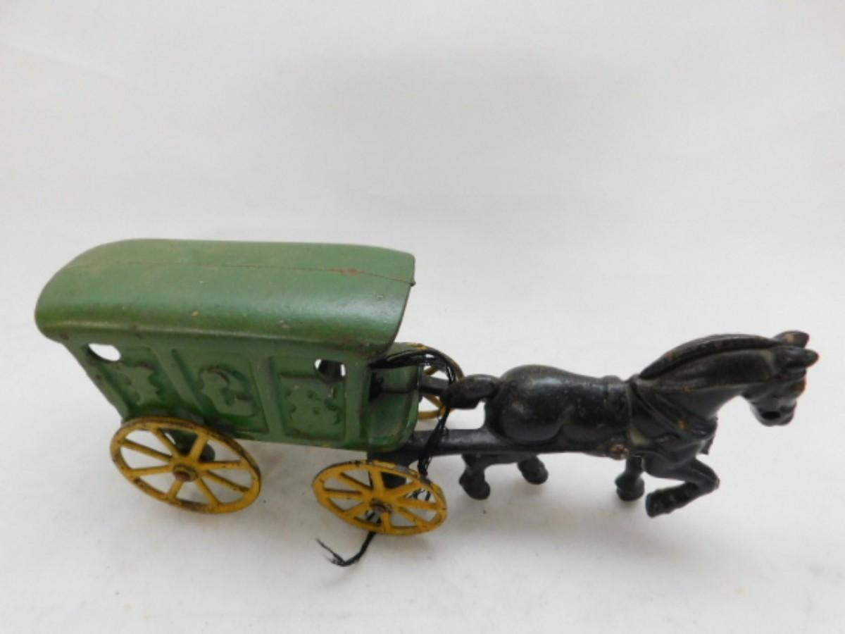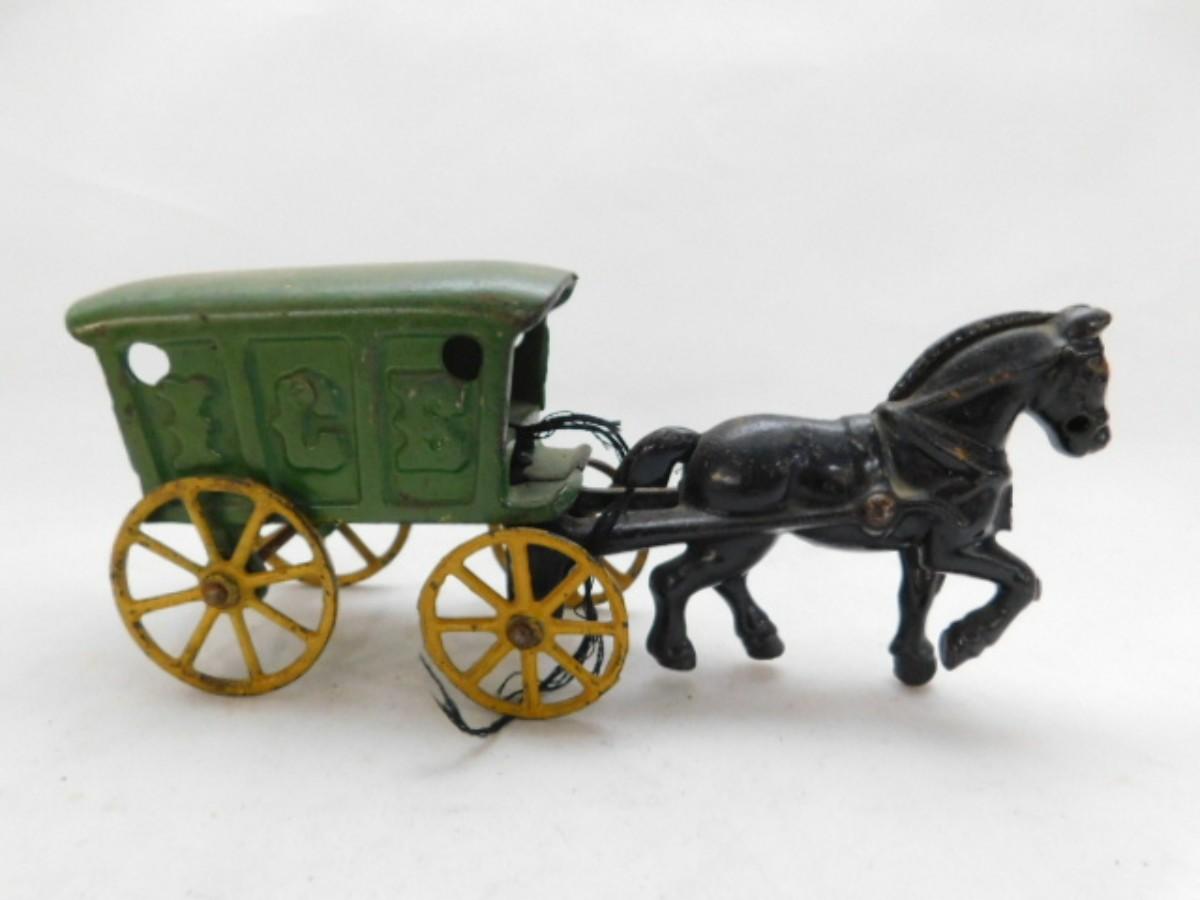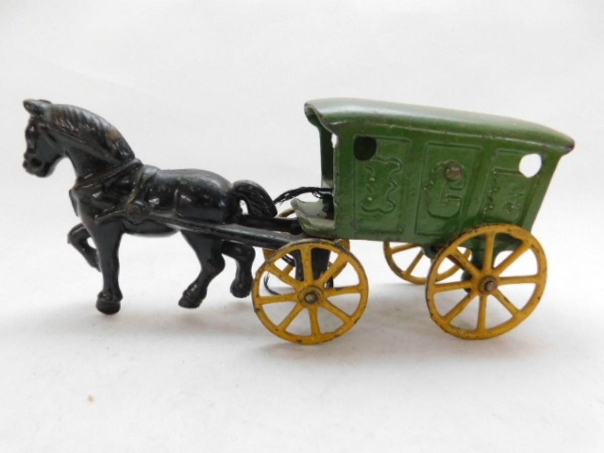 Vintage Hubley Cast Iron Horse Drawn Ice Wagon