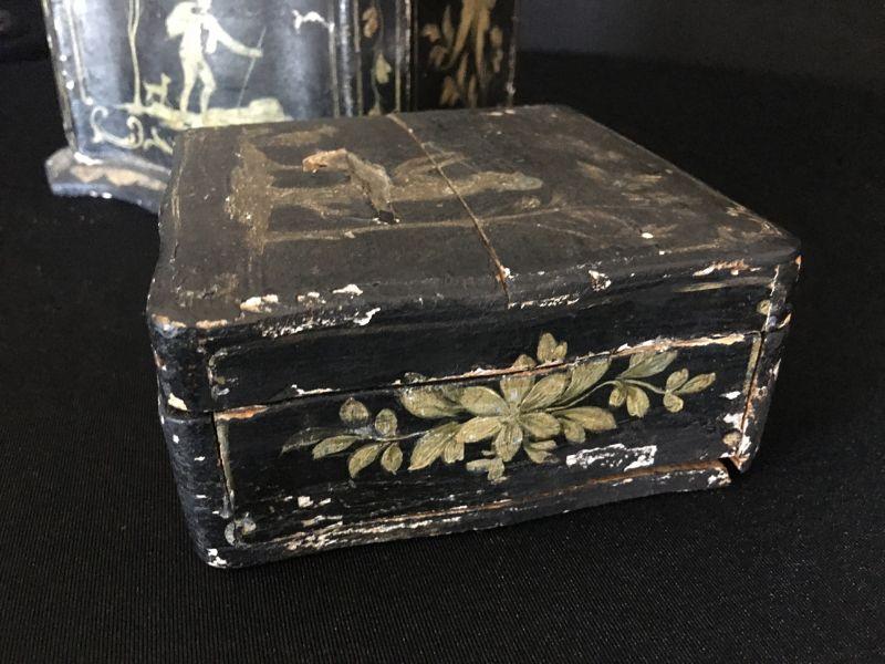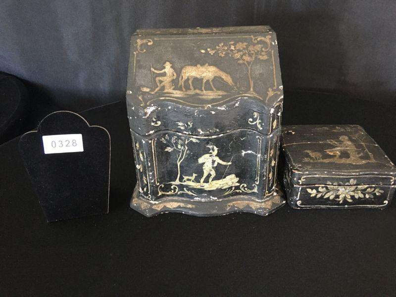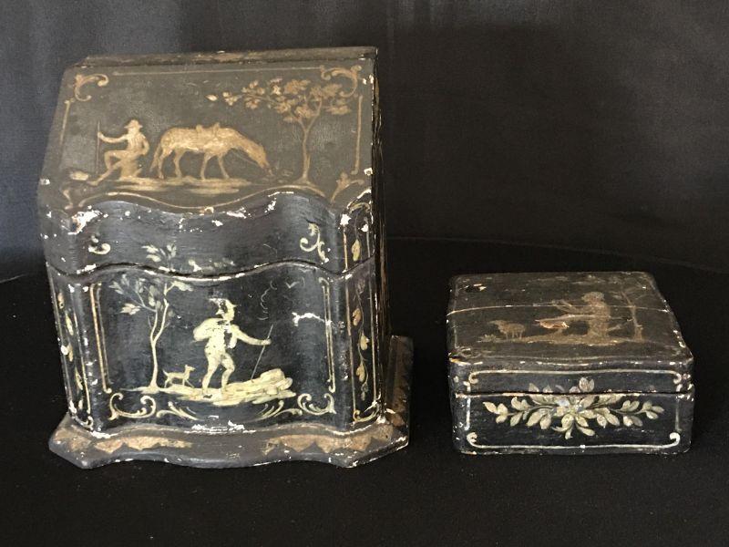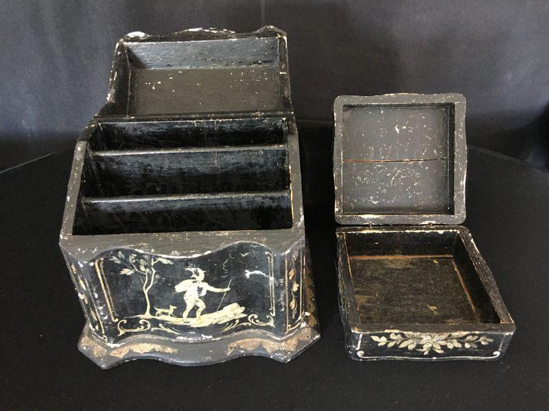 Antique Italian Wood Painted Letter Box Desk Set 2pc Lot # 328