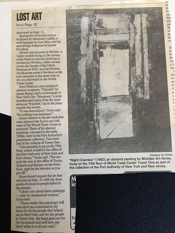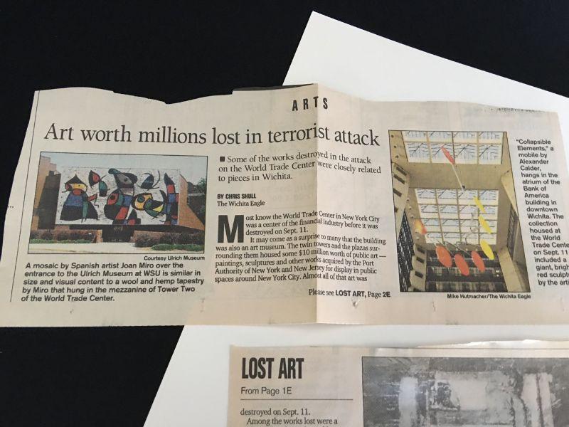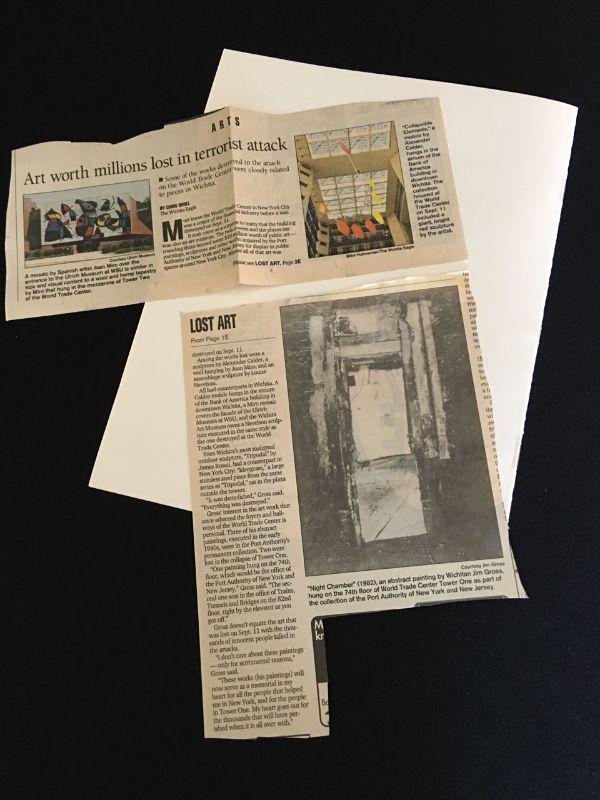 Includes newspaper article featuring artist works lost in the 9/11 attacks on the World Trade Center and catalogue.