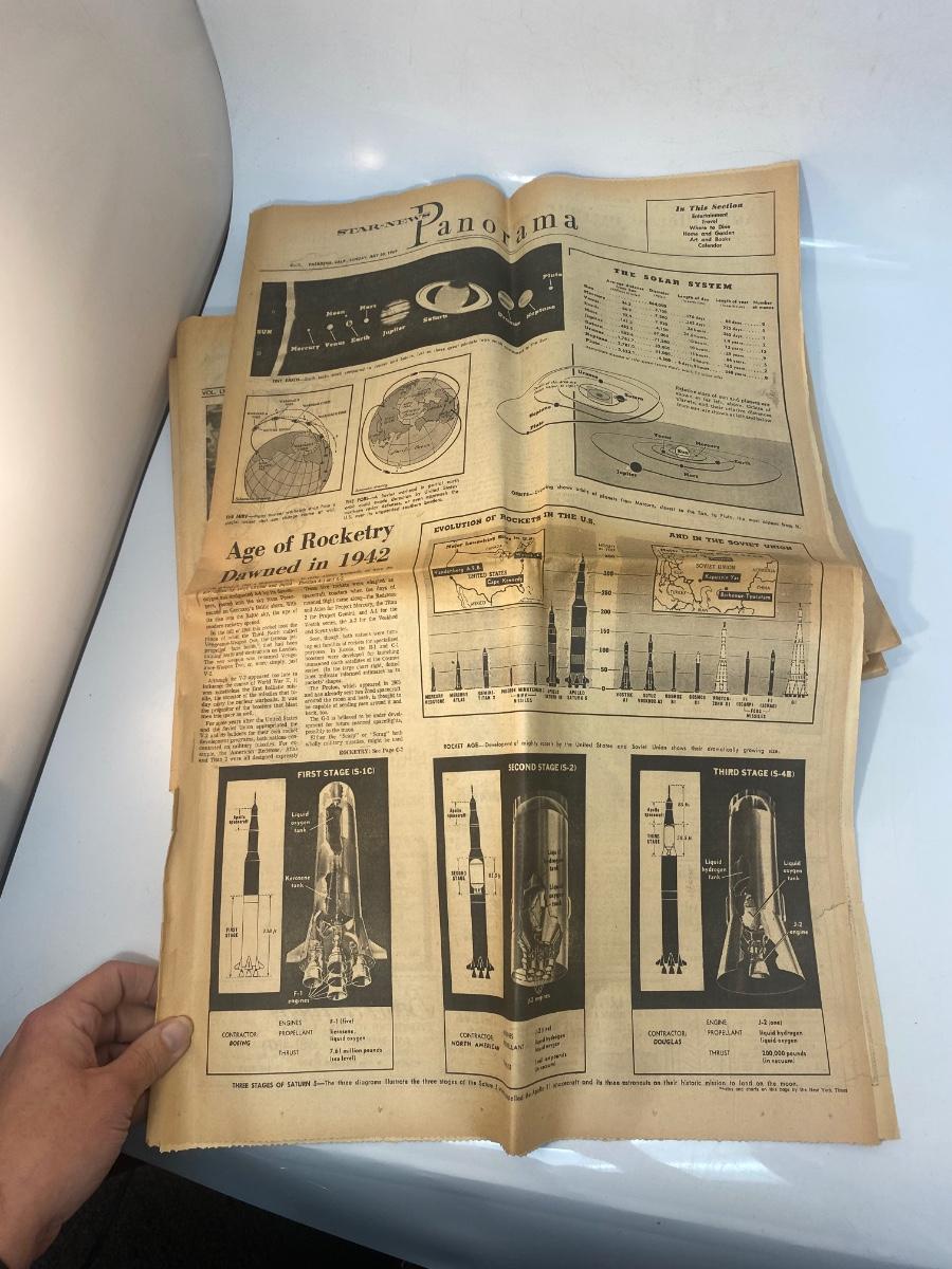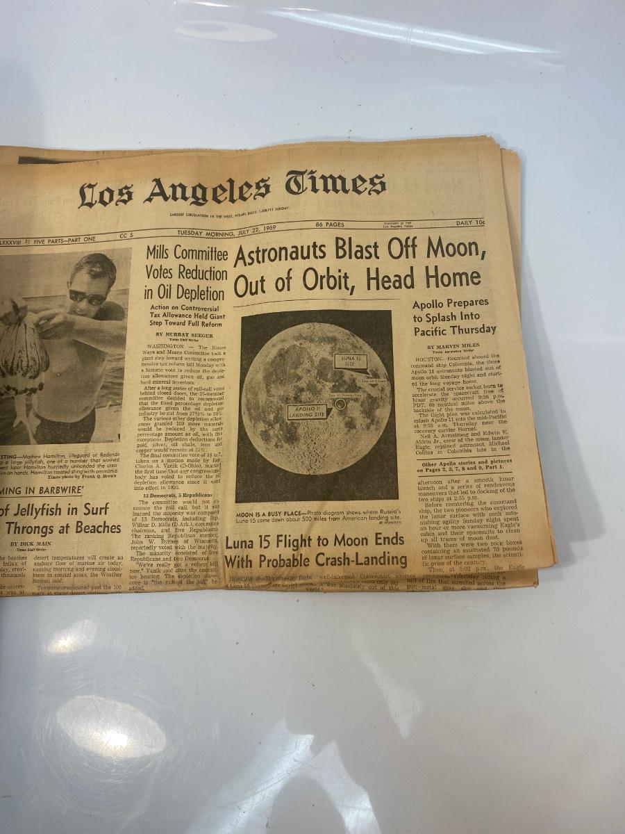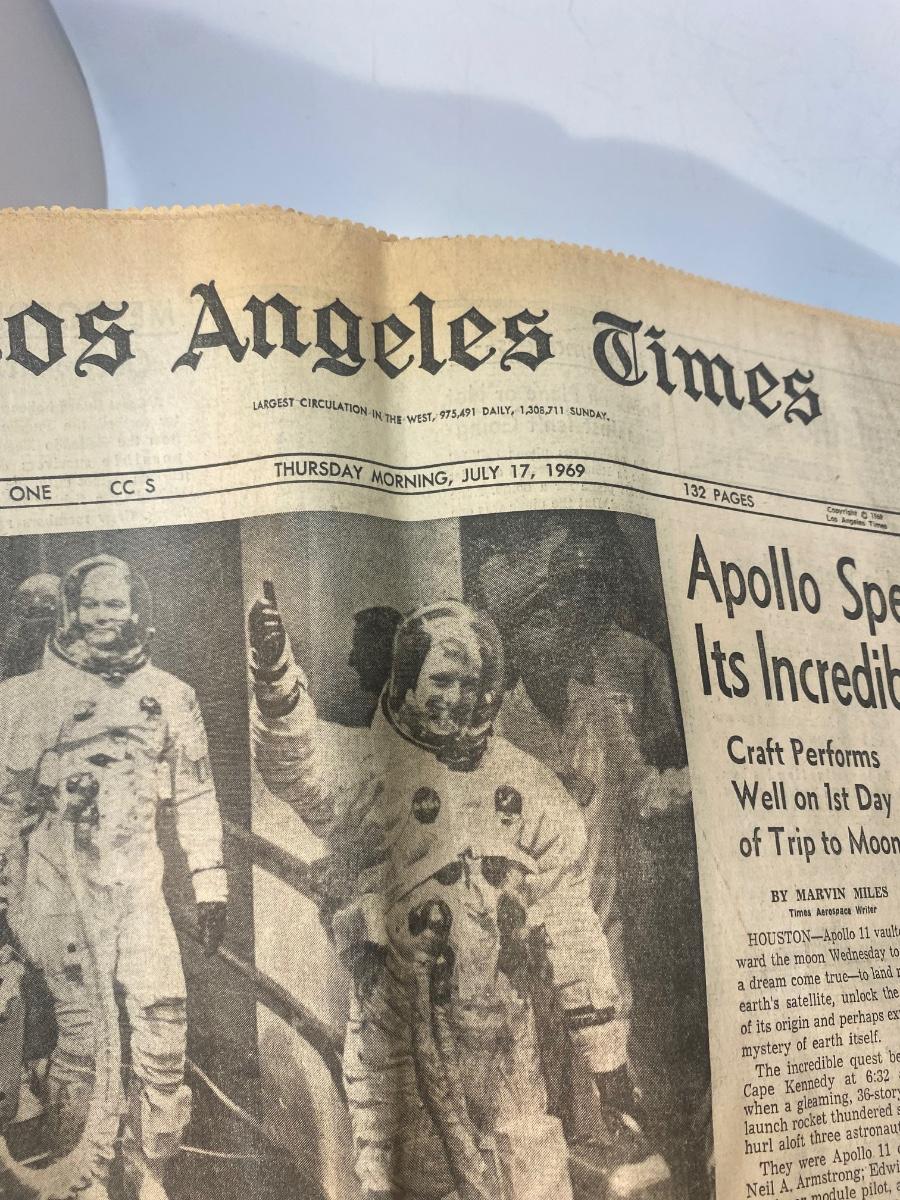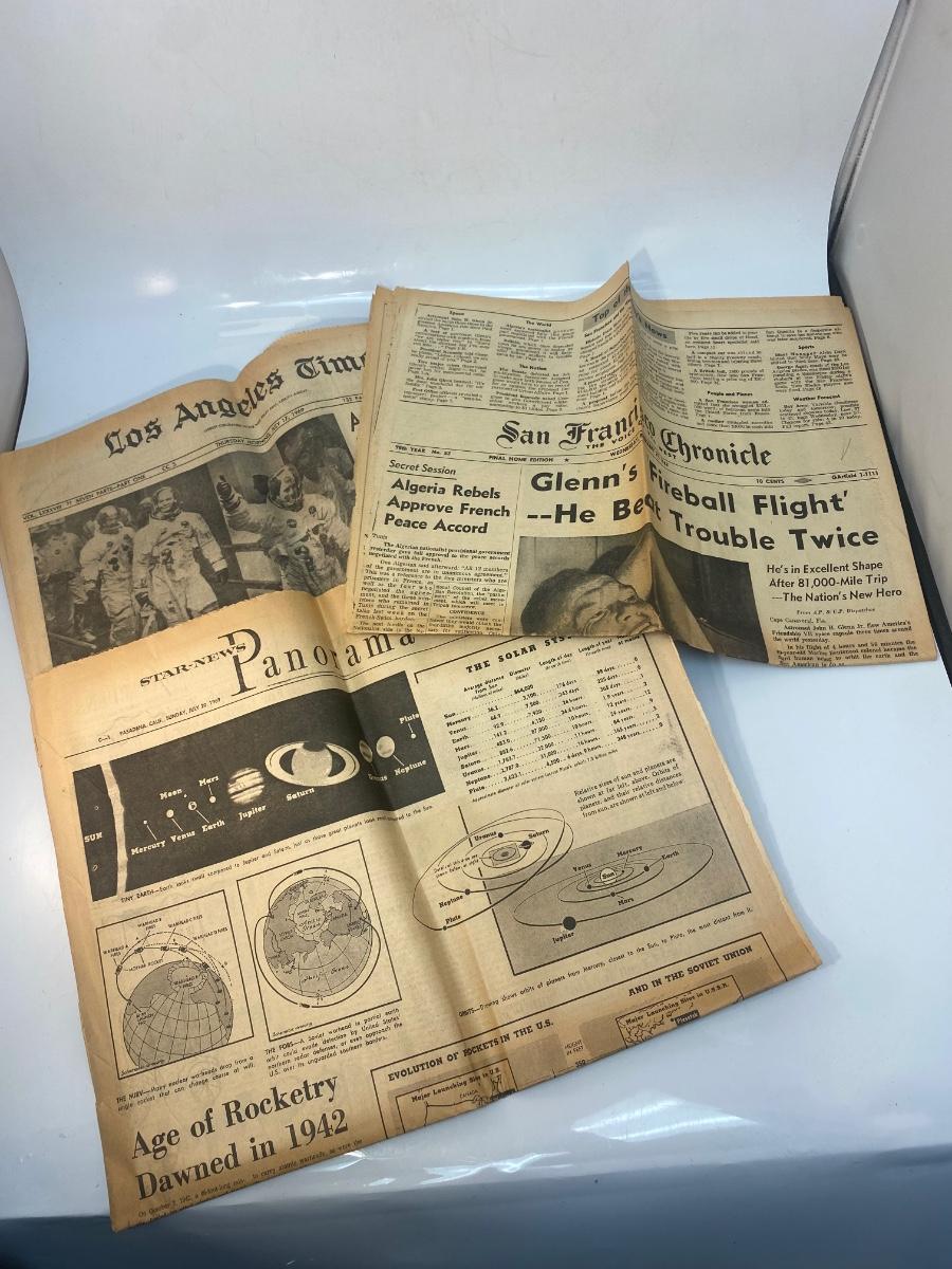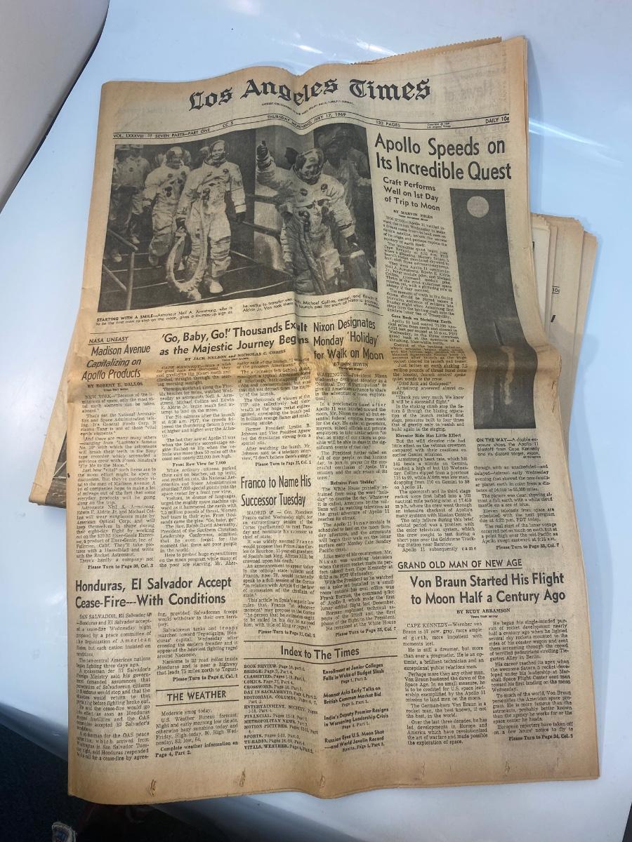 Mixed Lot of Newspaper Articles Front Pages from US Moon Landing July 1969. Articles regarding the astronauts and moon landing in July 1969. Articles from The Los Angeles Times, San Francisco Chronicle, and Star-News Panorama.