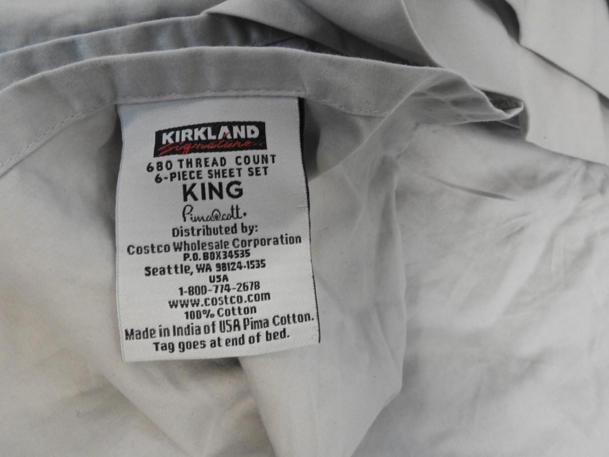 Kirkland King Size Sheet Set Fitted, Flat, 3 Pillowcases, 680TC, Used