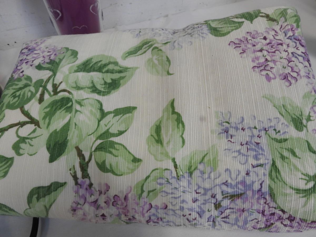 Kitchen Lot: Mug Holder, 3 Glass Mugs, Floral Rectangle Tablecloth, 2 Refillable Cups, Mini Waffle Maker-Works