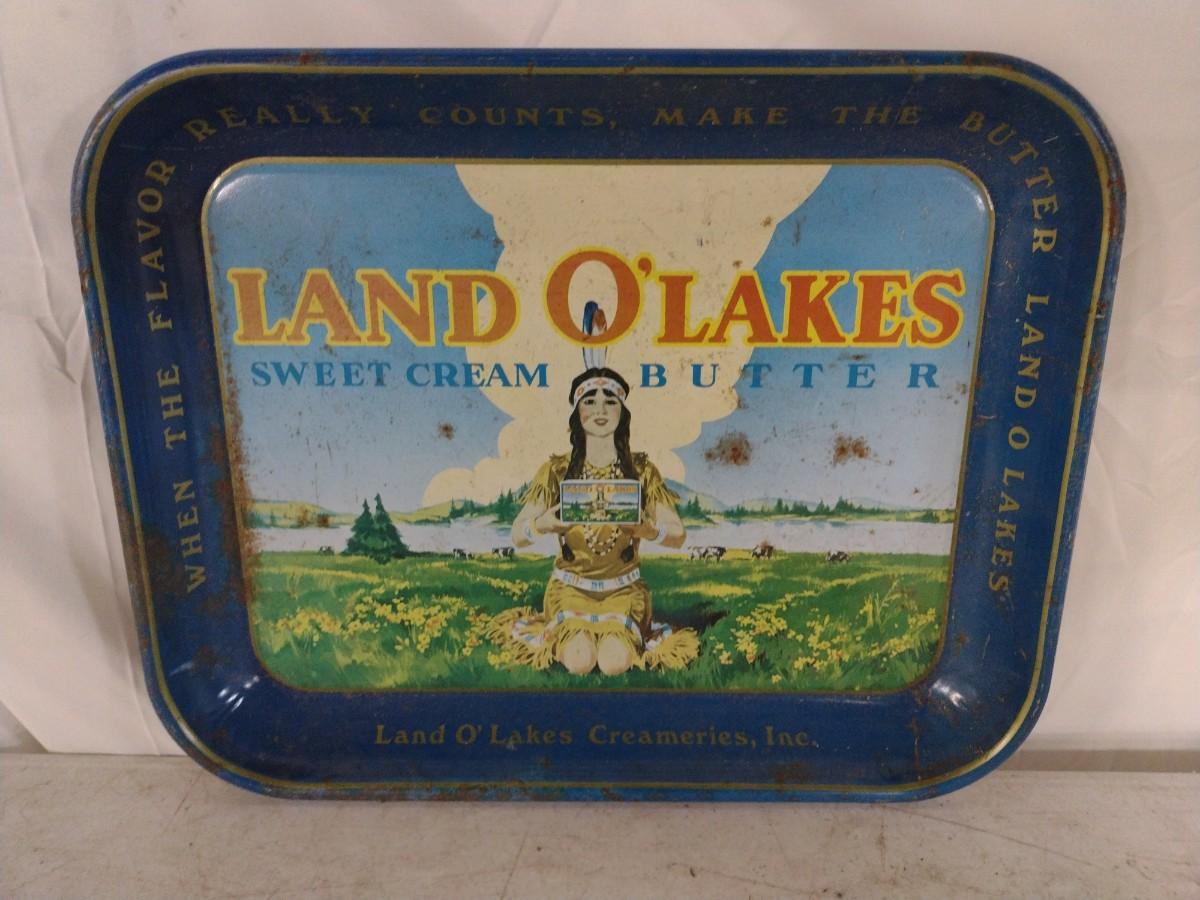 Vintage Land O' Lakes Metal Advertising Serving Tray
