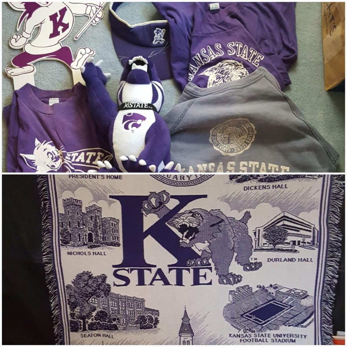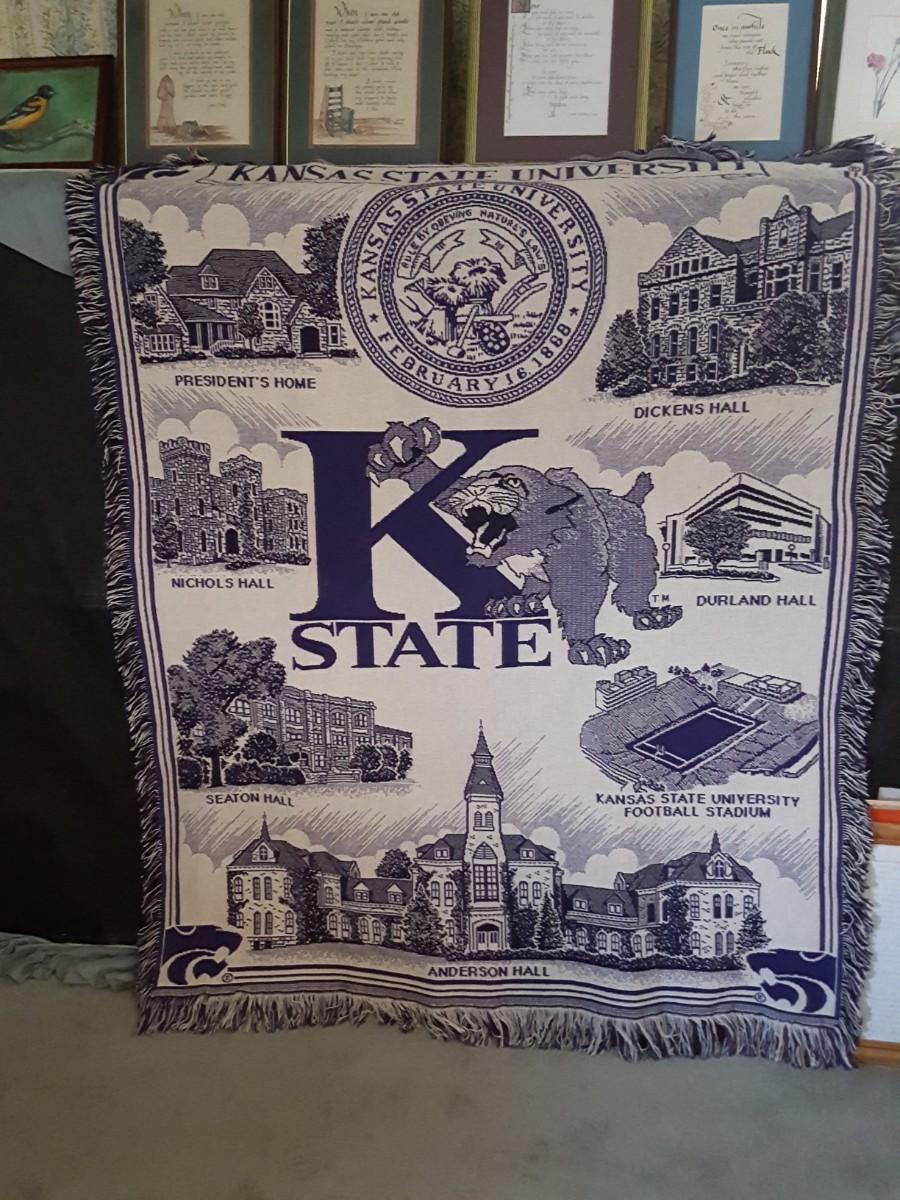 Lot Large Kansas State University Fringed Throw Blanket +more